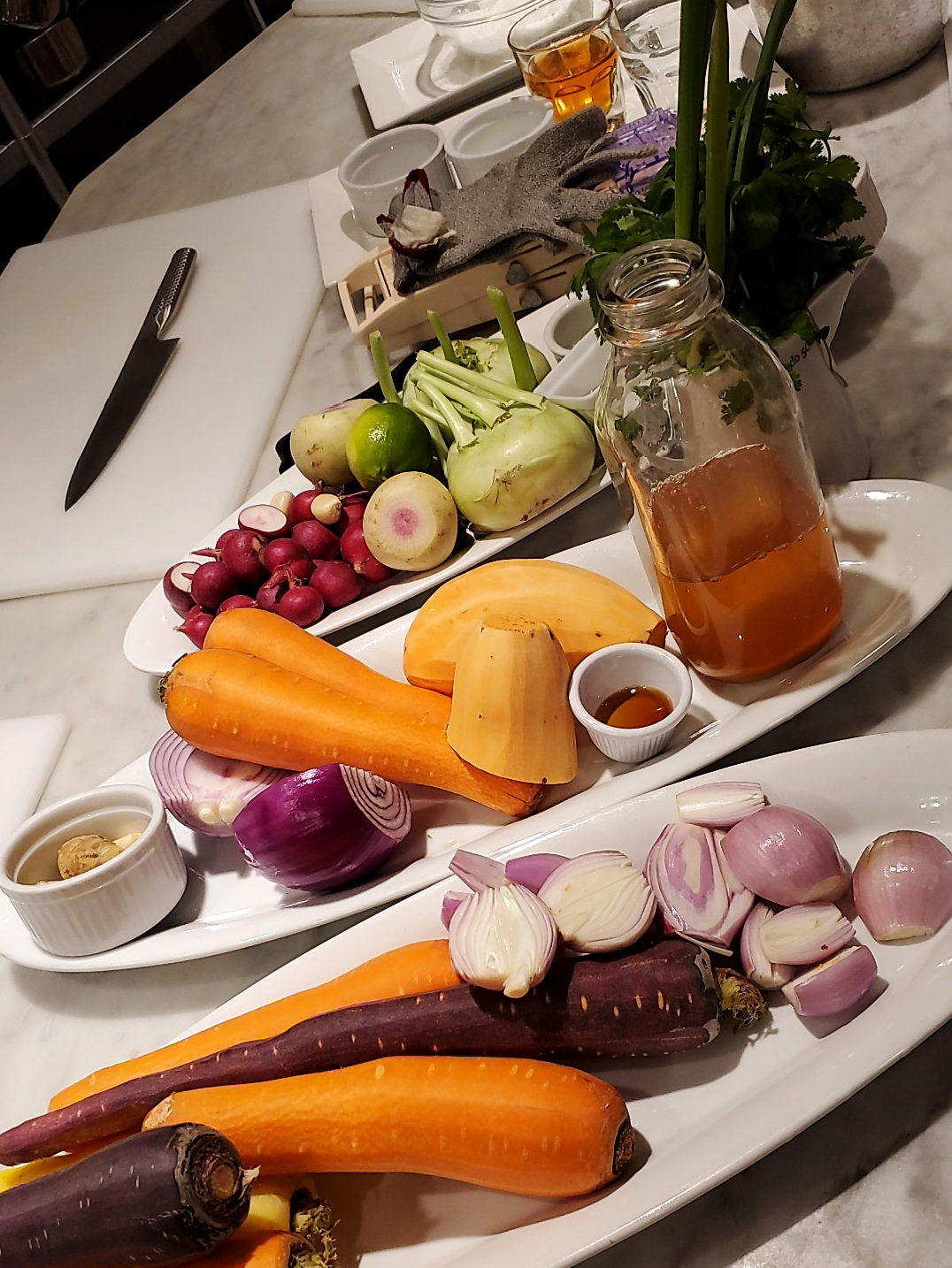 So, I decided that I should share with you all the dish that I worked on. The Apple and Root Veg Purée. We didn’t really use a recipe, just the platters of fresh veg and herbs and spices in front of us at our station. So this recipe is more of reflection of that evening, with me now actually taking the time to write down the measurements etc. I think I totally captured the flavours and essence of the dish. And you won’t be disappointed, I promise.