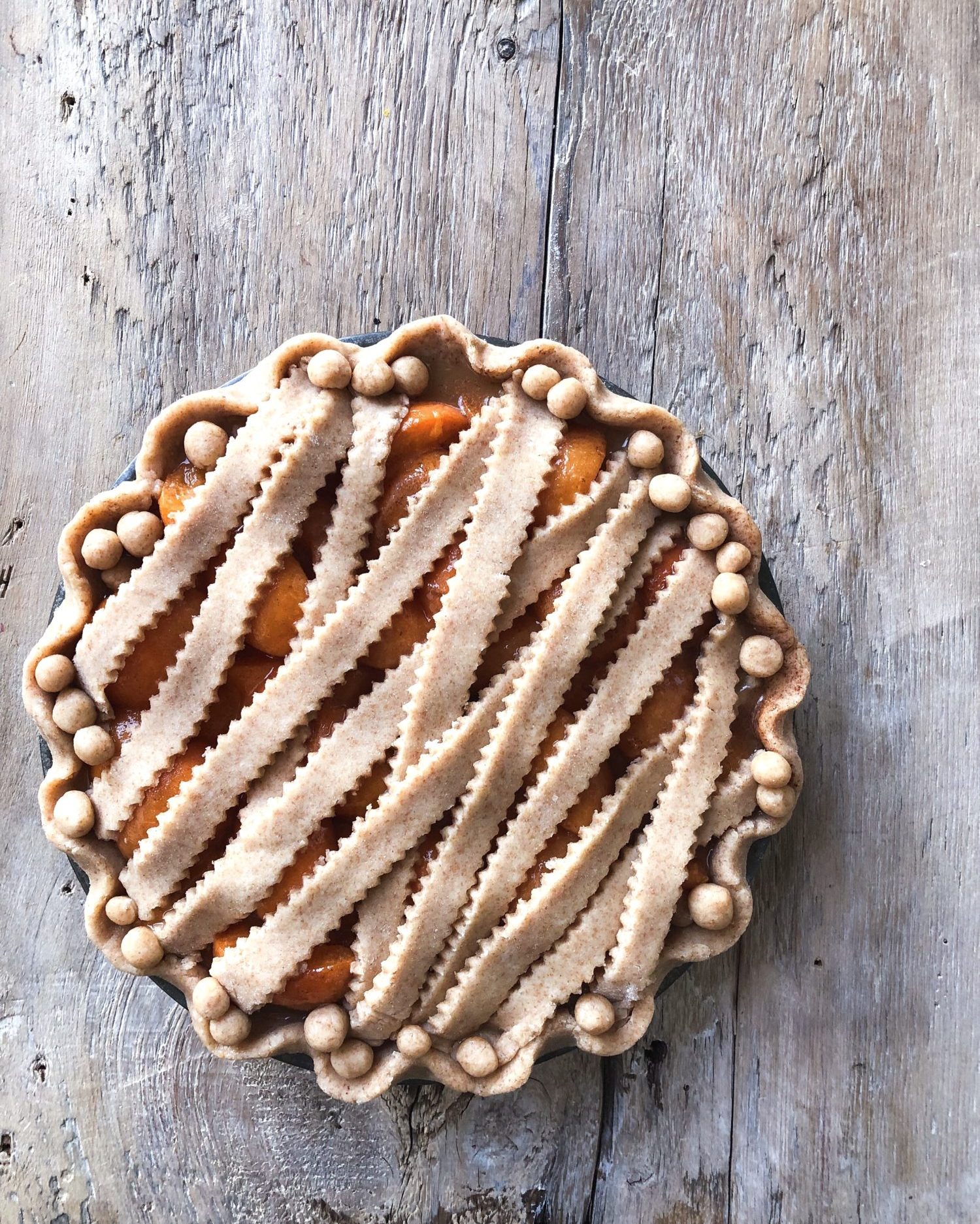 Let’s just say, since I baked up this pie and the beginning of the week (I baked it on late Sunday evening, I just couldn’t help myself) we’ve been enjoying it as breakfast, dessert, and snacks.  Almost time to bake another one.  Oh hey, for the pie itself that I’m showing here, I just did a fun easy lattice of sorts.  Let’s just call it the Jen Lattice.  It’s way less complicated that the intricate weaving of a traditional lattice.  It’s really just a matter of laying strips out in diagonals, touching at one end or the other, working from one side to the other.  In the end a fun pattern appears, and no stress or tearing of pastry for the baker!
