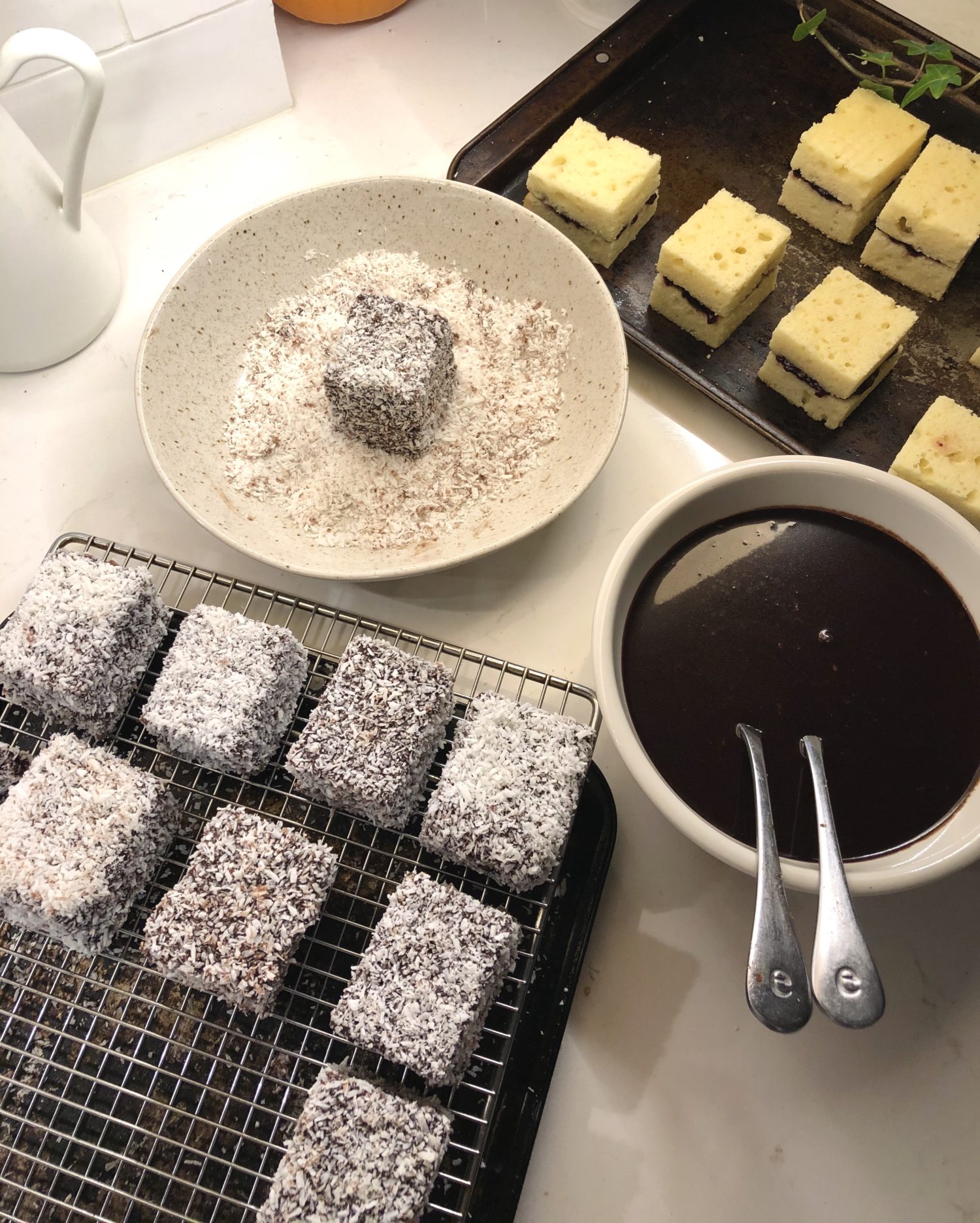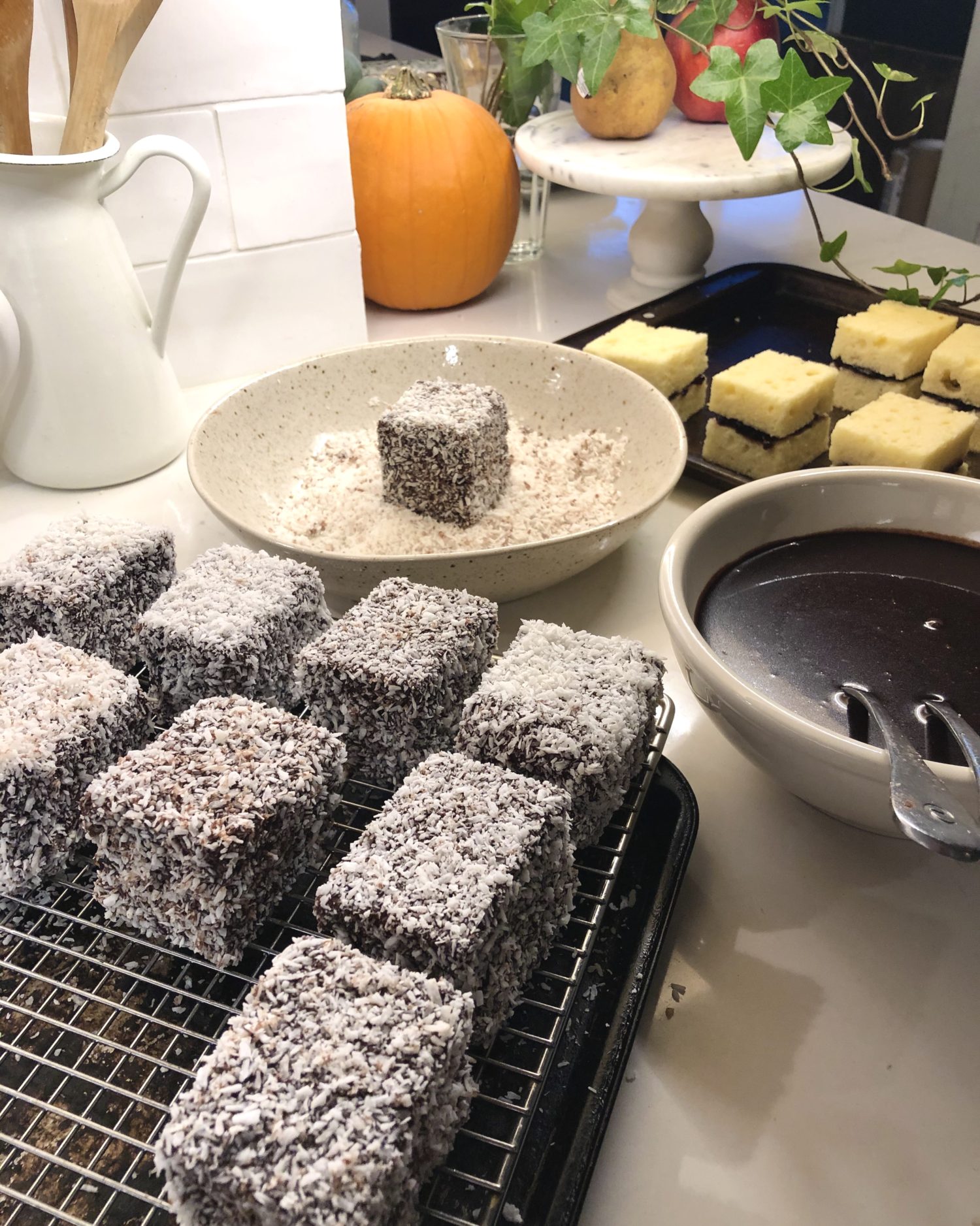 4. Place the finished lamingtons on a wire rack and leave for a couple of hours until set.