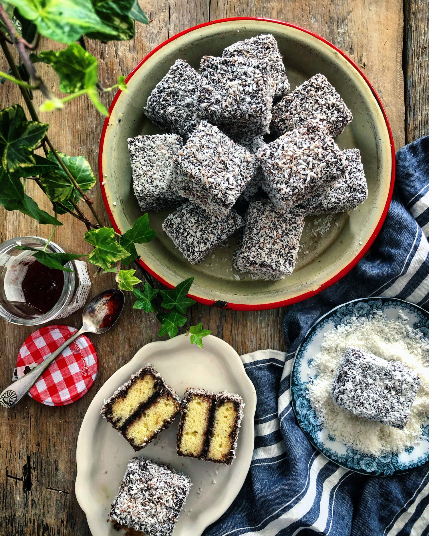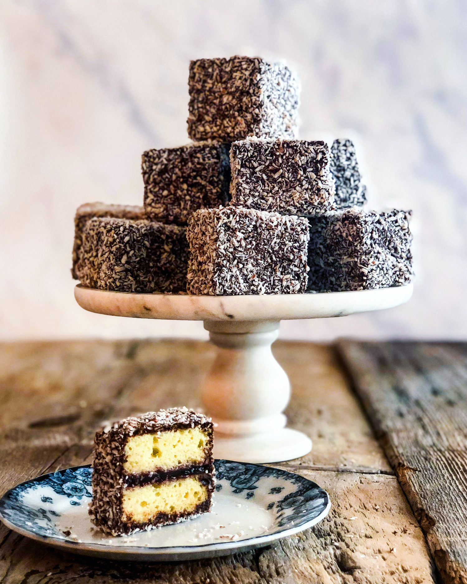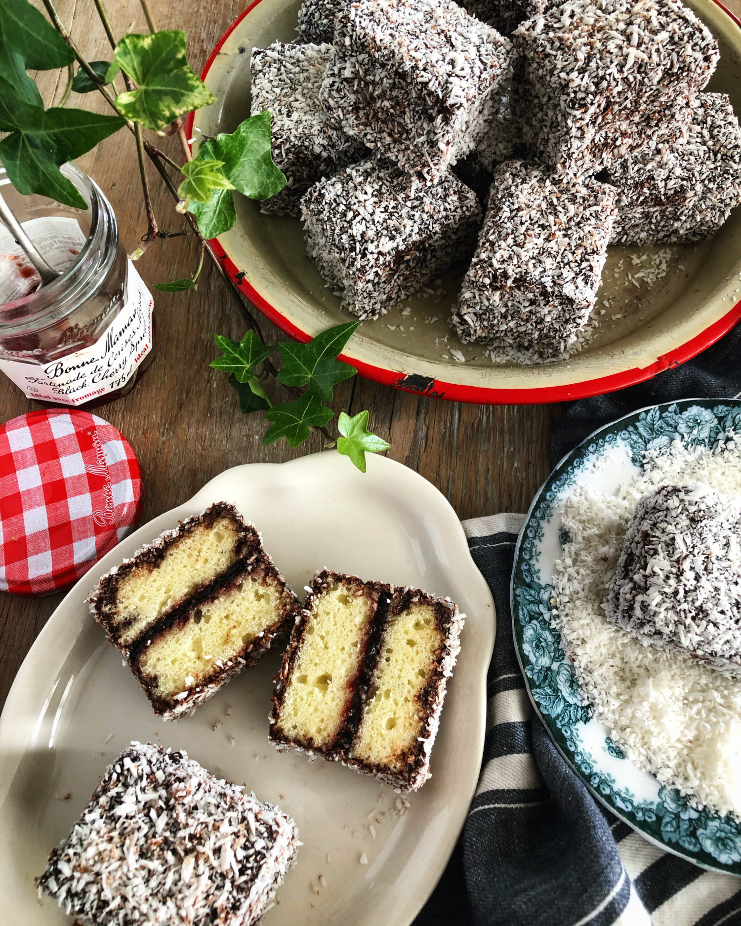 These lovely chocolate coated and coconut dipped little cakes are uniquely Australian. Bright cherry jam is sandwiched between two layers of light but springy vanilla sponge cake. Each square in dipped in chocolate and then rolled in coconut. They are perfect on a dessert table, or for afternoon coffee break.