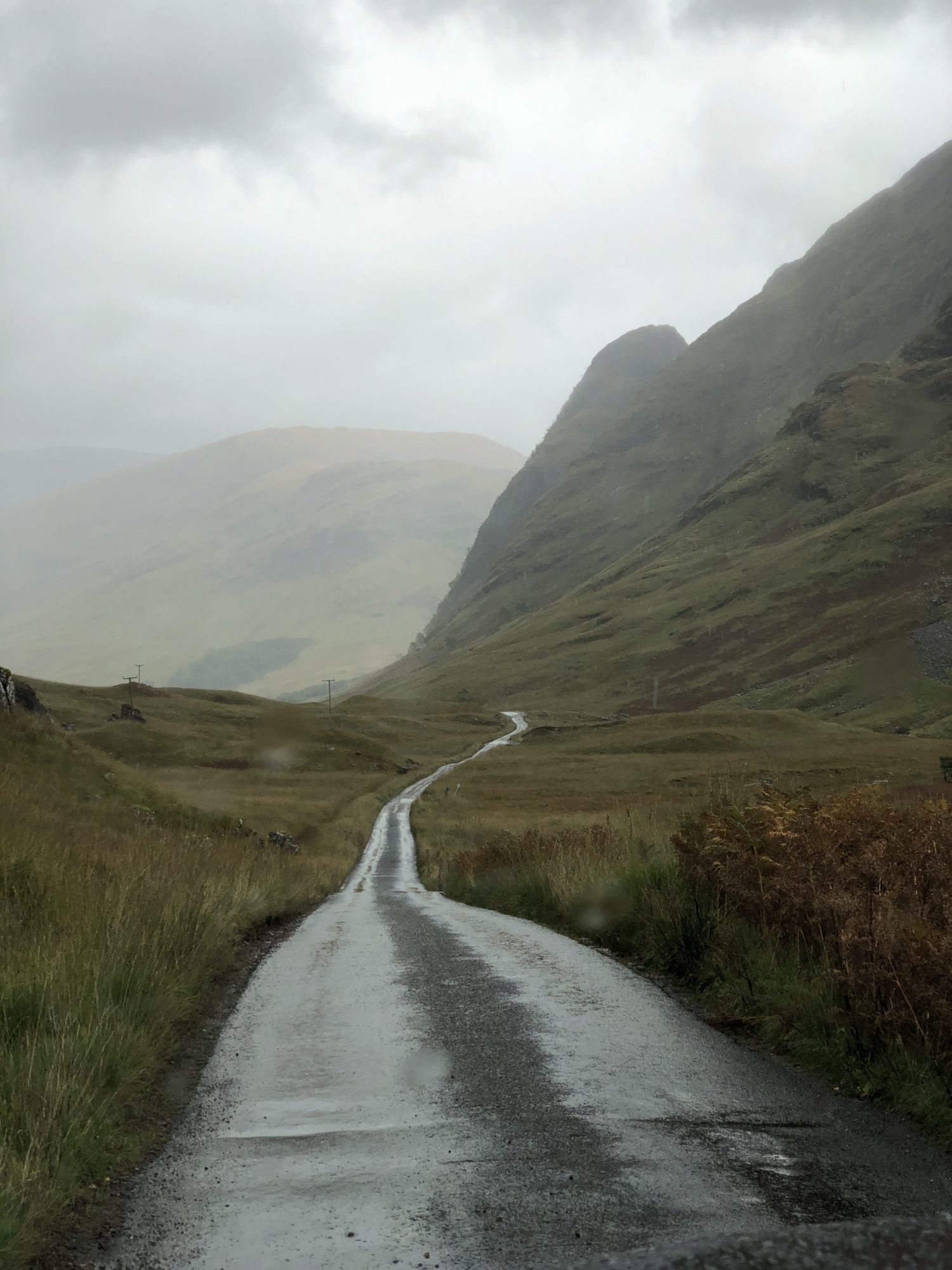 And my oh my, the scenery we saw! Along with castles like Eilean Donan Castle and Inveraray Castle, we had the rolling hills, the countless sheep and cows in the pastures that came right up to the shoulders of the very narrow roads (many only allowing one car at a time, even though they were two way roads) the ferns and heather, and the most unique shade of green I had ever come across. The sky was so moody- constantly changing from ominous clouds to bright beams of sunlight breaking through. We stayed in Oban, and on the isle of Skye, both of which had rugged coastlines and fishing villages that seemed to be lost in time. We also drove across the countryside to Inverness and finally Edinburgh. But through it all, the charming old villages filled with relaxed, witty inhabitants were so enchanting. Jim’s favourite drive was doing the Skyfall road in Glen Etive (the James Bond movie location) It was a moody day, and we truly felt as we drove that lonely road that we would at any moment find that old estate with the pillar with the stag at the entrance.