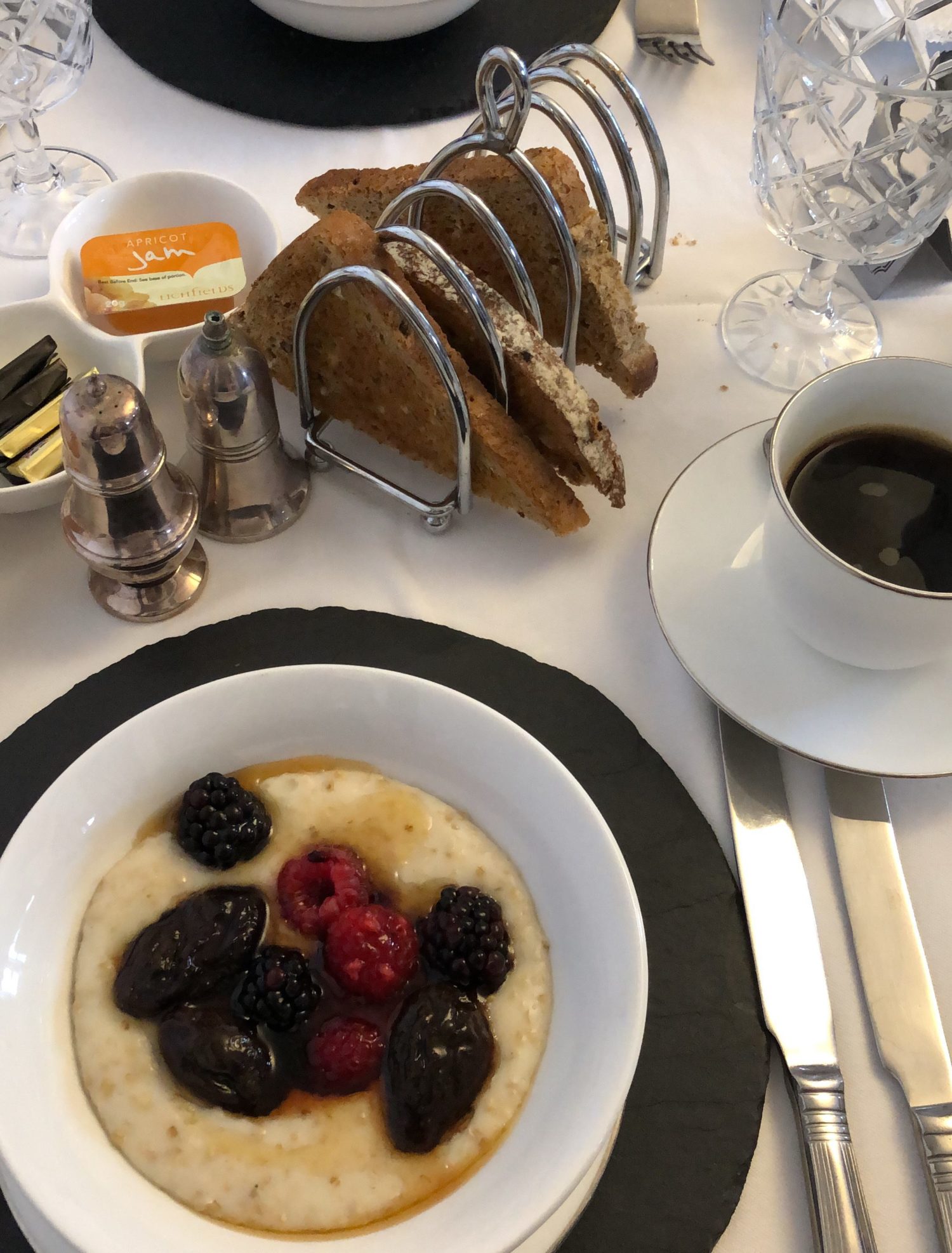 Everywhere we stayed, we were offered the most amazing breakfasts to begin our days. A ‘Full Scottish Breakfast’ of eggs, bacon, beans, mushrooms, sausage and toast was an indulgence that we really didn’t feel the need to partake of. Rather, Jim became totally enamoured with the Porridge on the menus. Add some milk, honey and fruit, and he was a happy camper. I did try smoked haddock and kedgeree fish cakes, smoked haddock and scrambled eggs, and scrambled eggs with smoked salmon (do you see a trend?!) at the various stops throughout Scotland. But I also ate the porridge with prunes (I adore prunes- especially when stewed in orange juice and cinnamon). It was just such a cozy meal and great way to start the day.