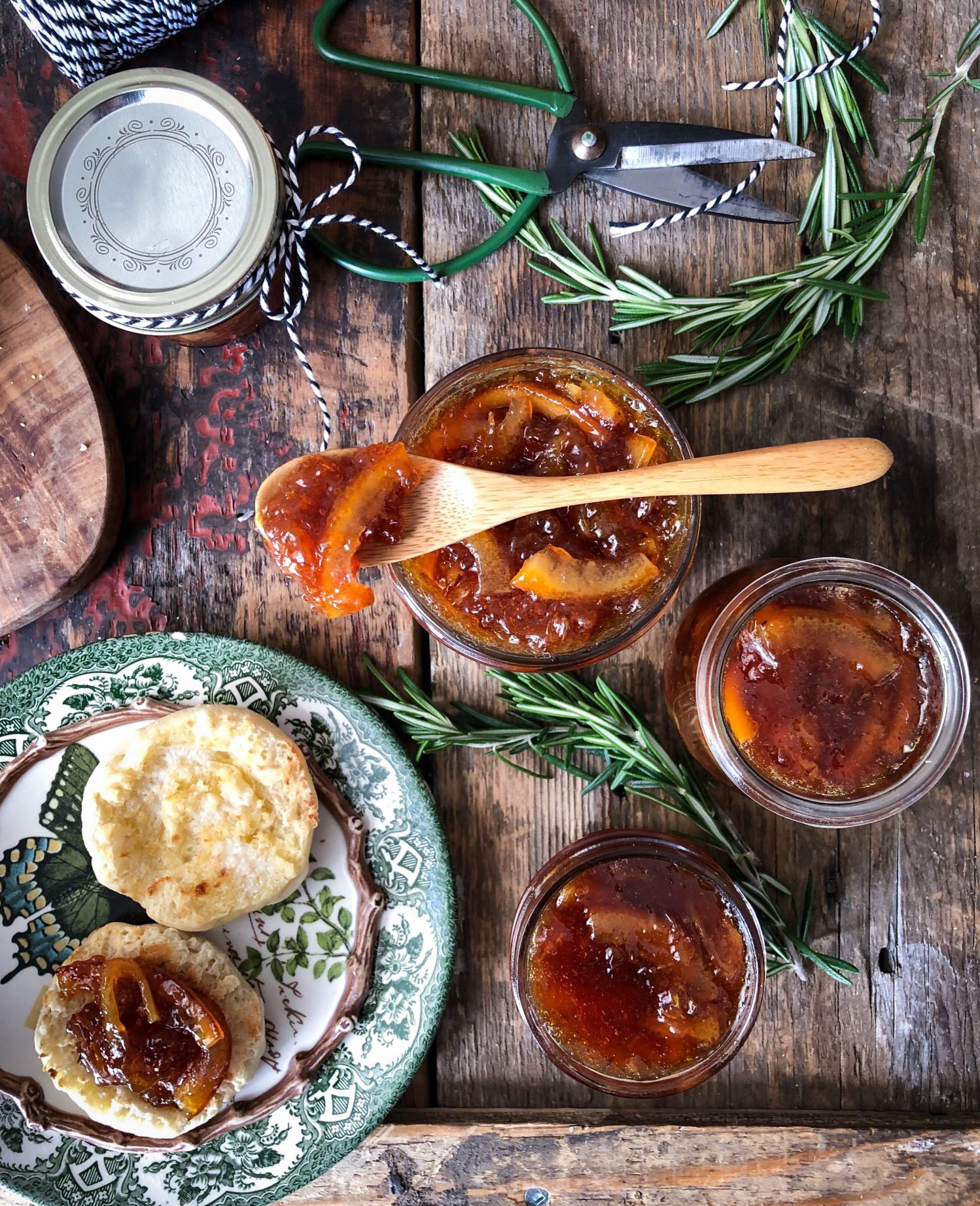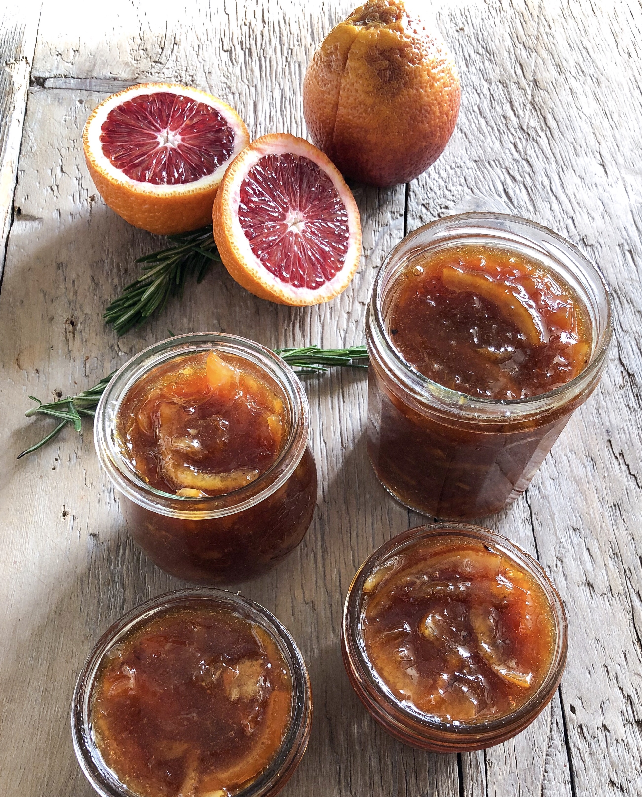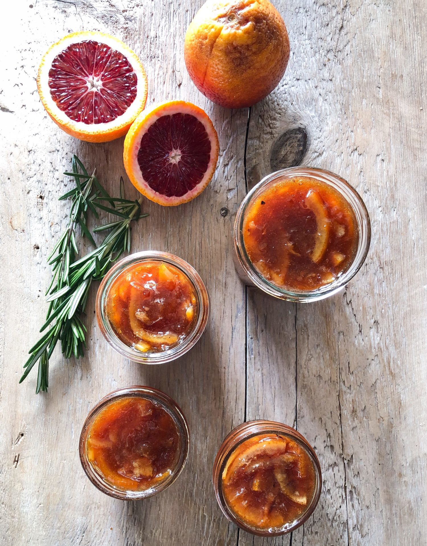 Filed Under: Condiments & Dressings, Pantry, Winter Tagged With: blood oranges, citrus, jam, marmalade, preserves, rosemary, winter