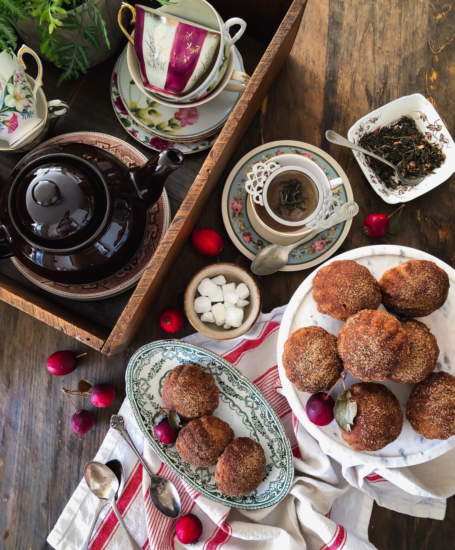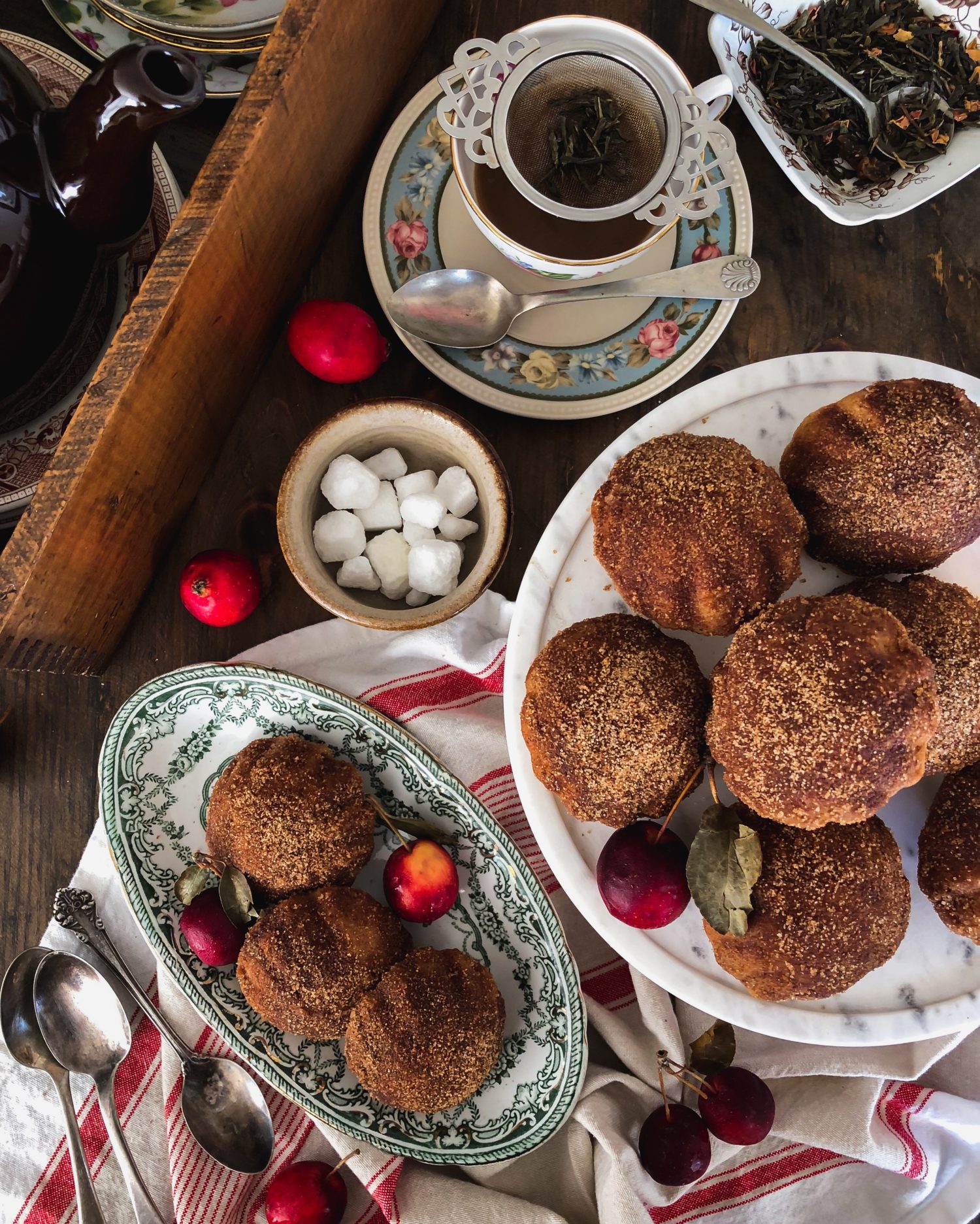 I said all this, because as I was baking up these ‘donuts’, I though that they would be perfect for tea. The kind of tea that you would picture Violet have served on a perfect afternoon in Yorkshire. And you know that there would have been bourbon in her tea, how else could she come up with some of those zingers!?