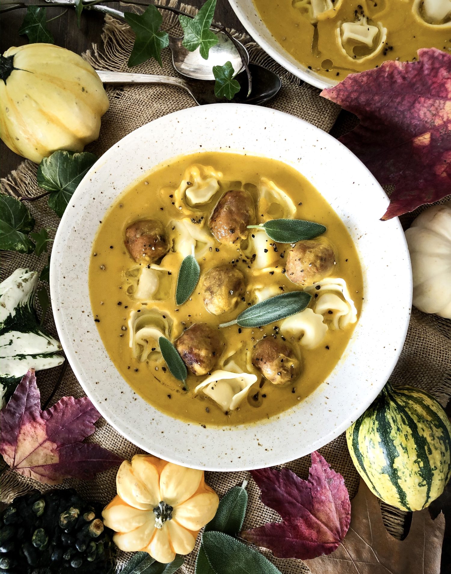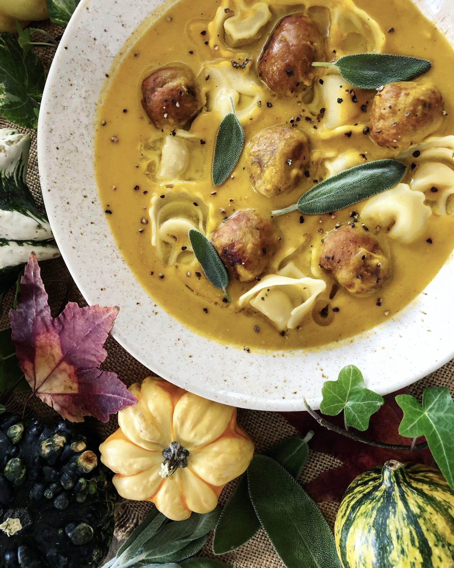 Turkey Sausage Tortellini Butternut Squash soup, autumn