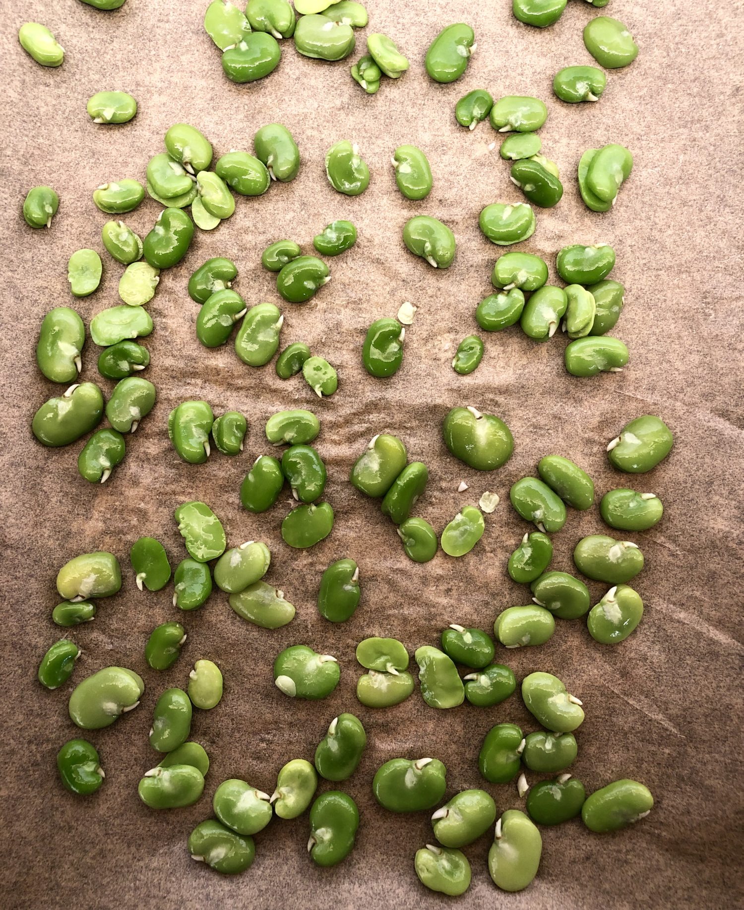 If you want to keep them past a few days in the fridge, or well past the season, lay them flat onto a parchment lined baking sheet and freeze for about a couple of hours. Then place them all into a freezer bag. As you get more, you can keep freezing and adding more beans to the bag. This way you can have the brightest green fava bean hummus on the block in September!