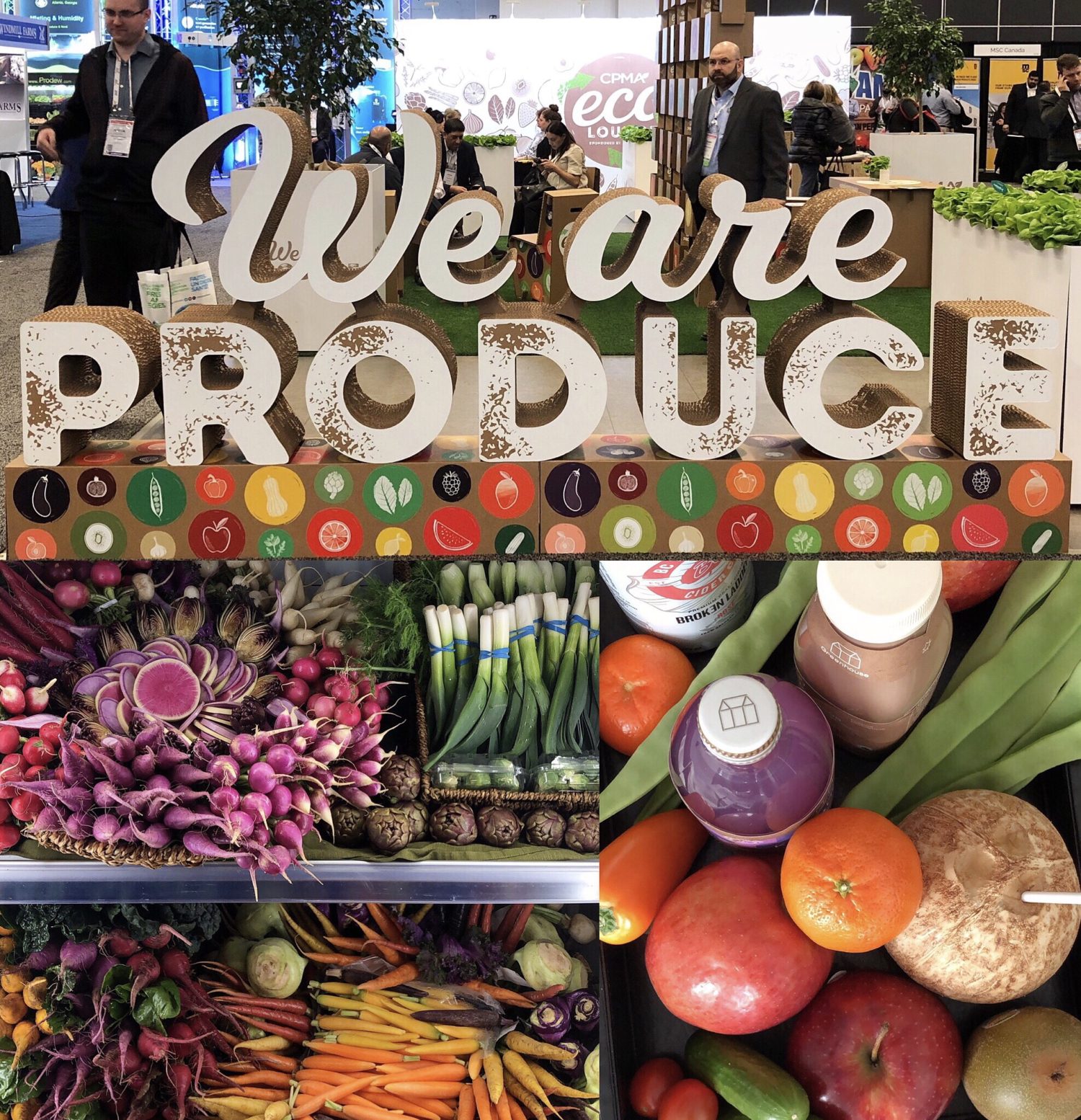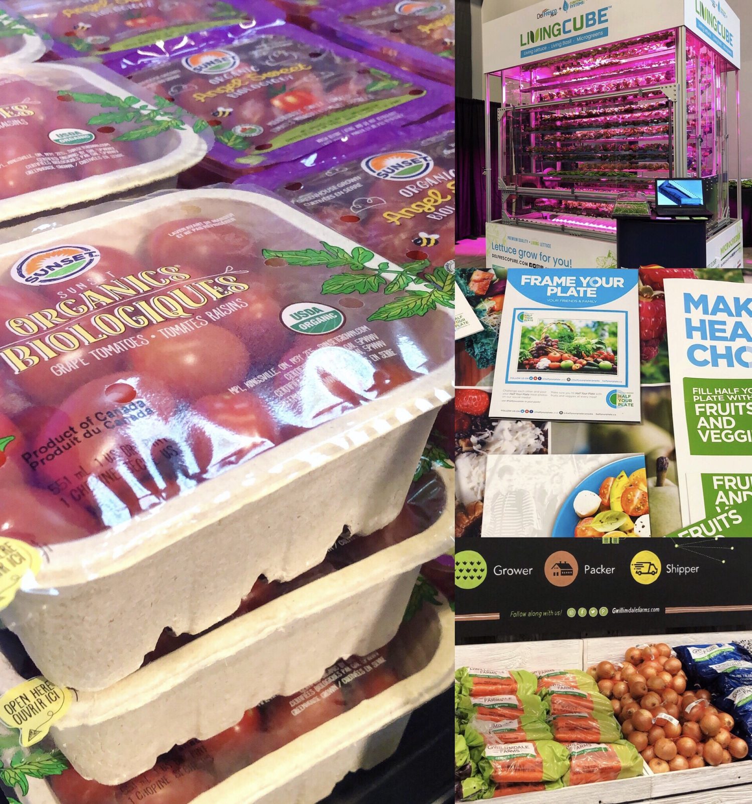 We were also fed well as we visited all the various farmers and venders at the conference- all that fresh fruit and veg, coming from as far as Belgium, the Middle East and all over Central and South America! And I learned a lot along the way.  Sustainability, food waste, plastics in the water system, these were all topics addressed, seeing that they are on the minds of farmers, suppliers and consumers alike.  So it was refreshing to see how suppliers are taking these messages to heart with inspired new packaging.  More compostable materials for labels and containers, less plastic, innovative techniques for farming and transport, etc.  We even got to view a great method for vertical farming at the DelFresco display, with their Living Cube.