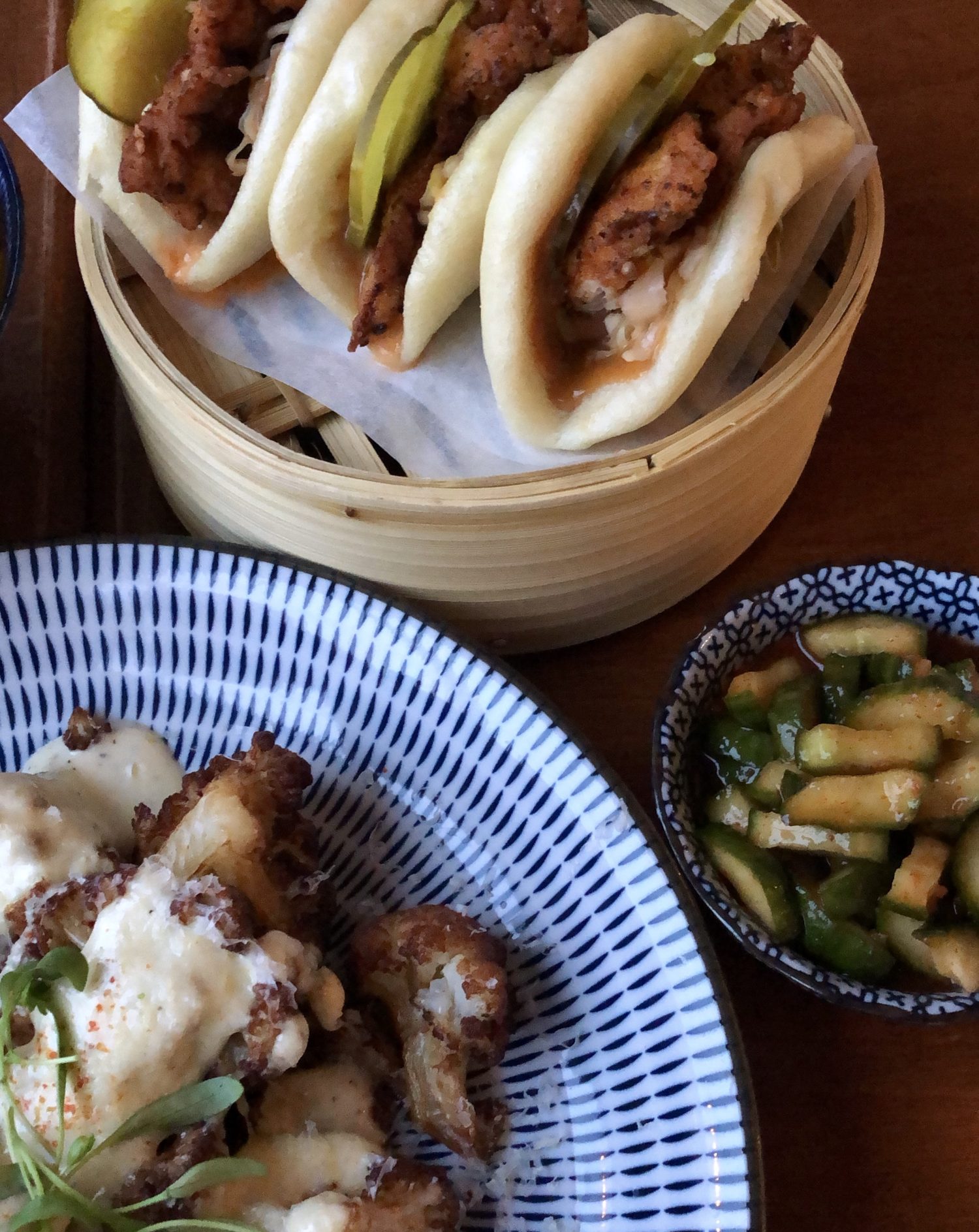 Montreal Cho Restaurant, bao, kimchi cucumber, gruyere cauliflower
