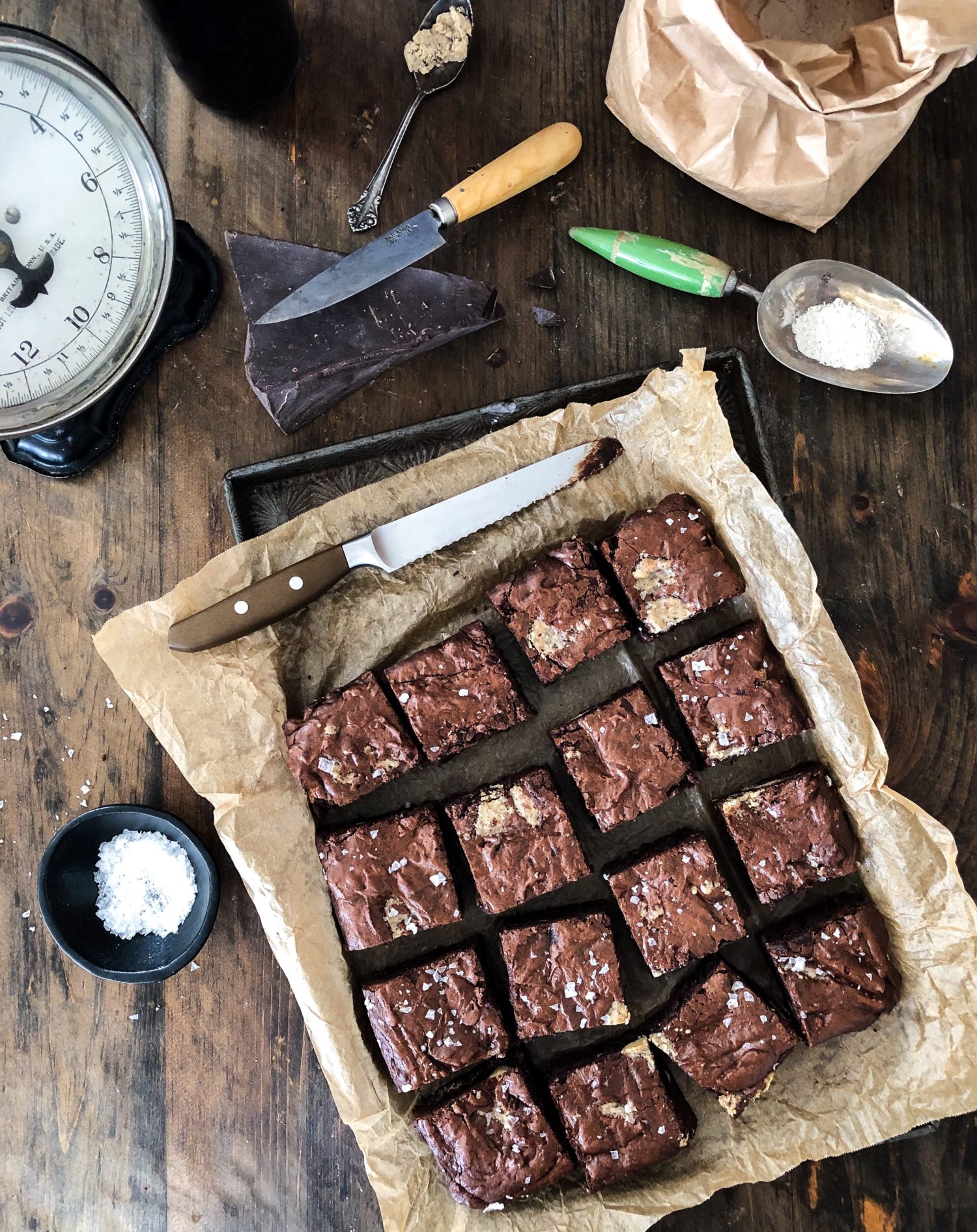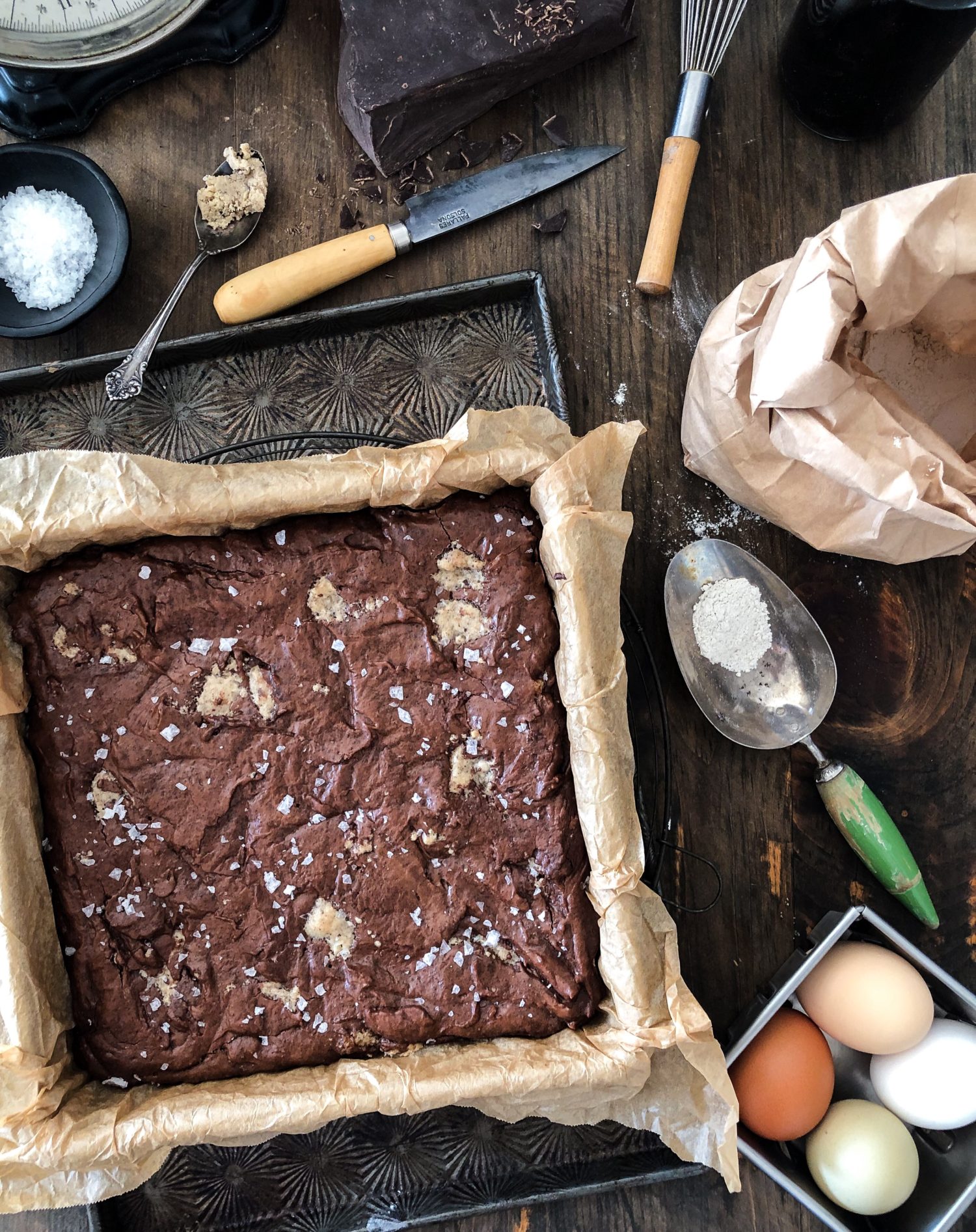 When I finally found this recipe, I had to smile at how much we all really inspire each other. I had tried so many brownie recipes over the decades. My usual go-to recipe was Martha Stewart’s version that I had been making, since the 90’s. And then I got so excited to start baking through British baker Claire Ptak’s book, The Violet Bakery Cookbook. Everything I made from it turned out wonderfully. So I just had to try out her brownie recipe. She mentions in the book that her recipe was inspired by Tartine Book No 3‘s Salted Rye Cookies. I love that recipe as well! So here she was taking the use of rye flour and adjusting her spelt flour recipe. I’m so happy she did.