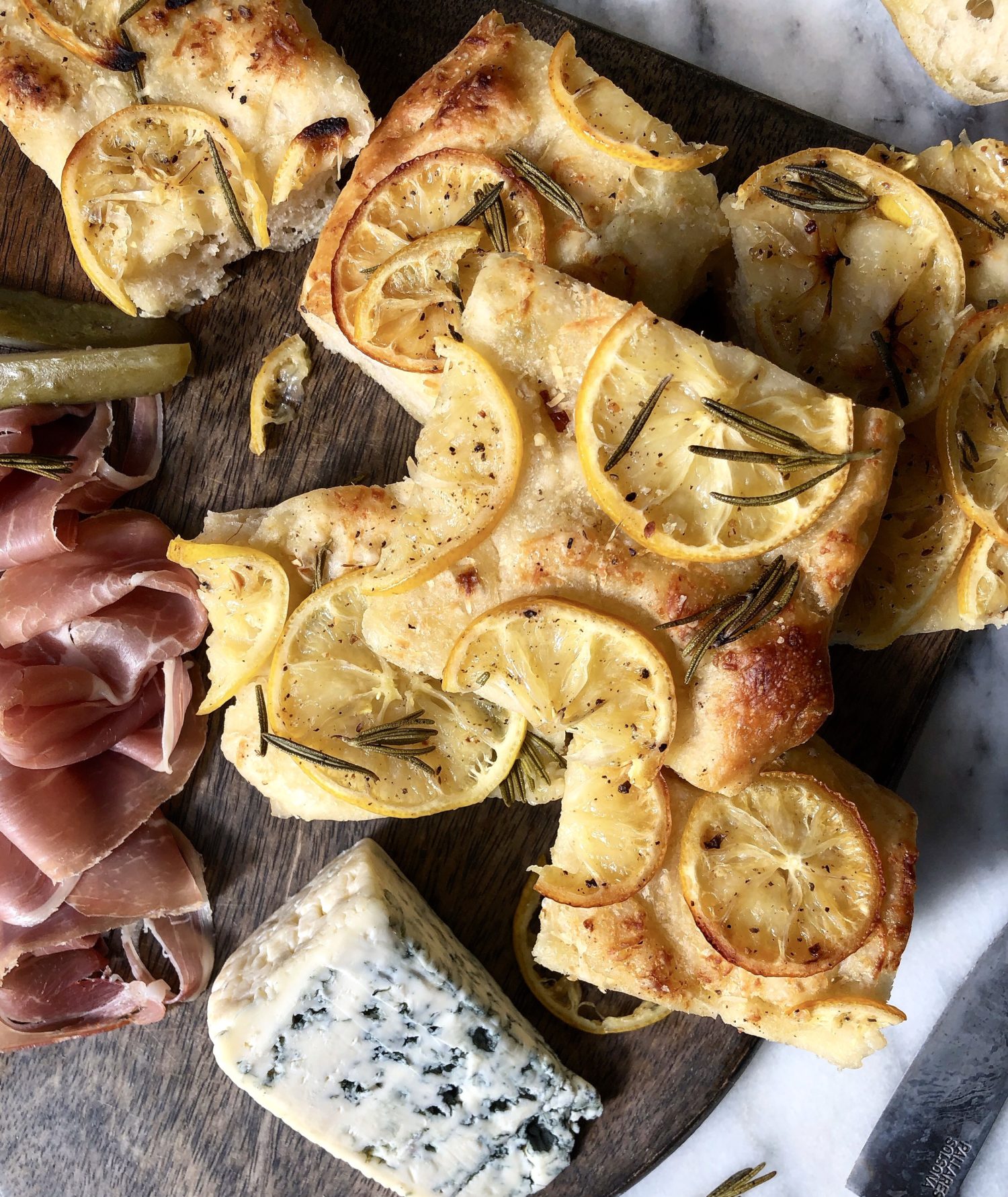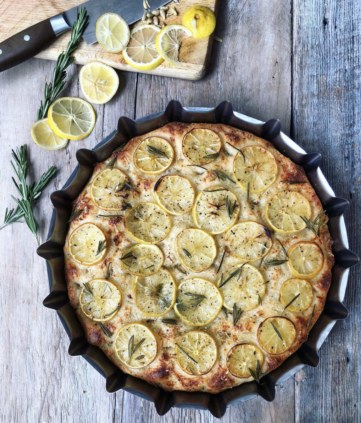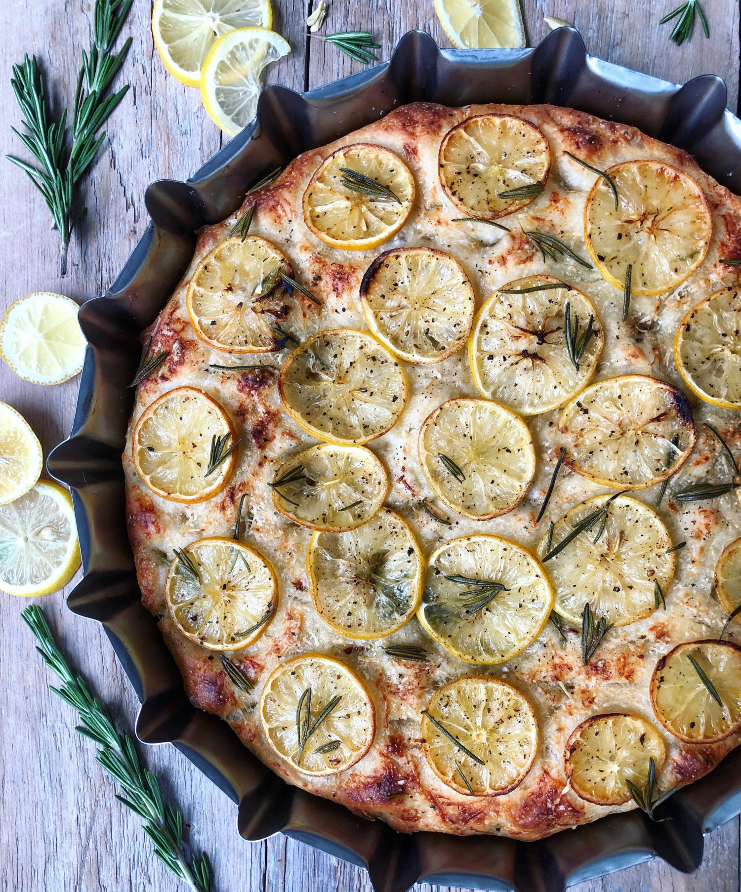 Filed Under: Breads & Pastries, Pantry Tagged With: bread, bread flour, cracked pepper, focaccia, kosher salt, lemon, parmesan cheese, rosemary, yeast