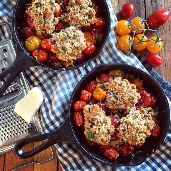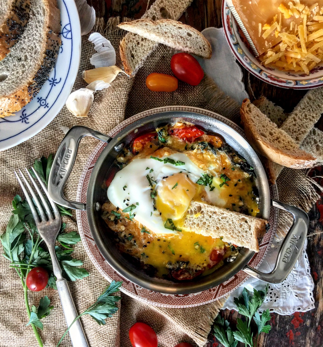 Cheddar Kale and Cherry Tomato Baked Eggs