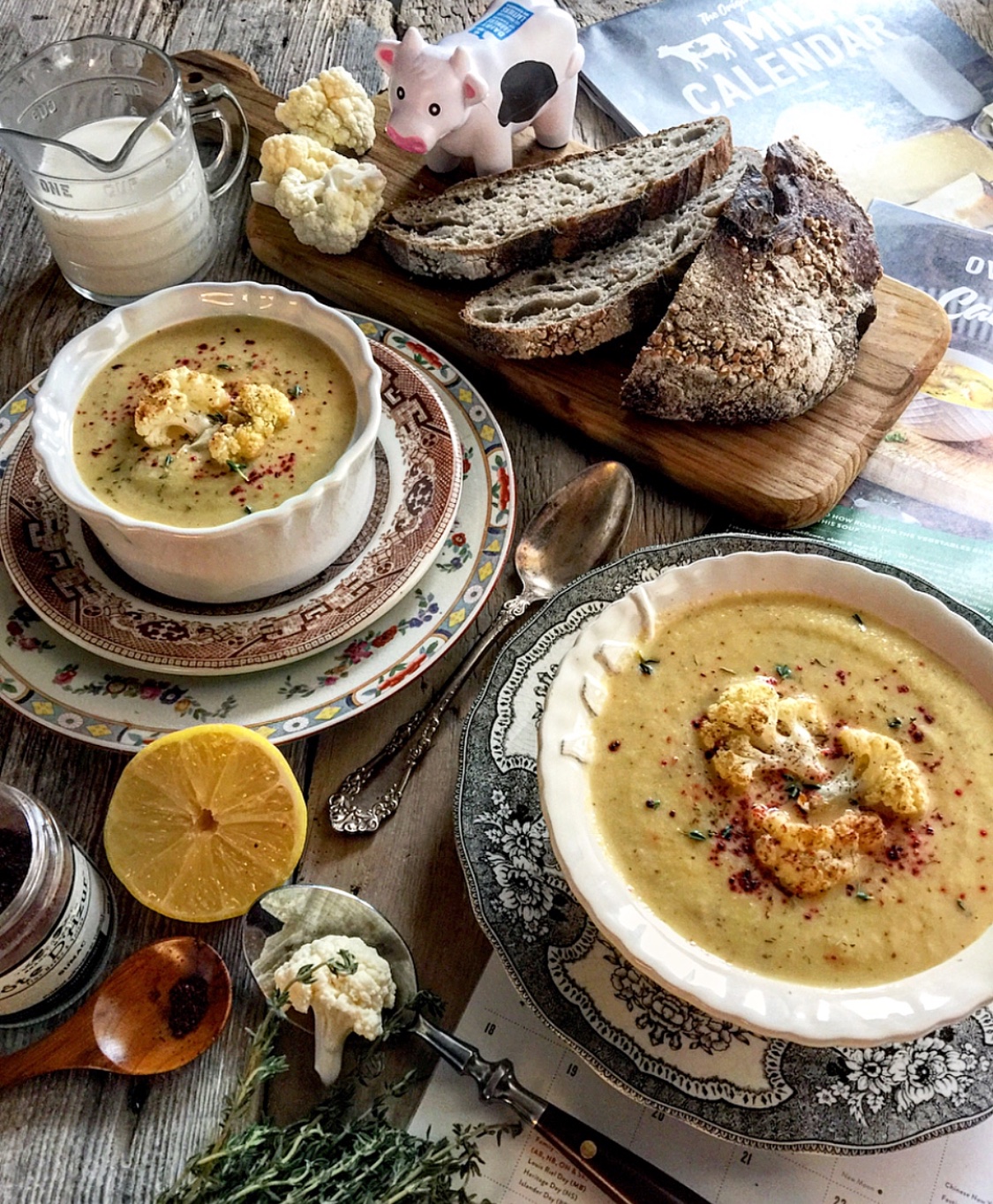 Roasted Potato and Leek soup with prosciutto chips and savoury granola