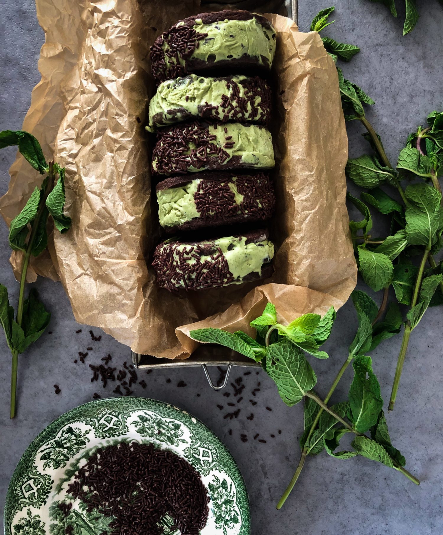 Matcha Mint Chocolate Chip Ice Cream Sandwiches