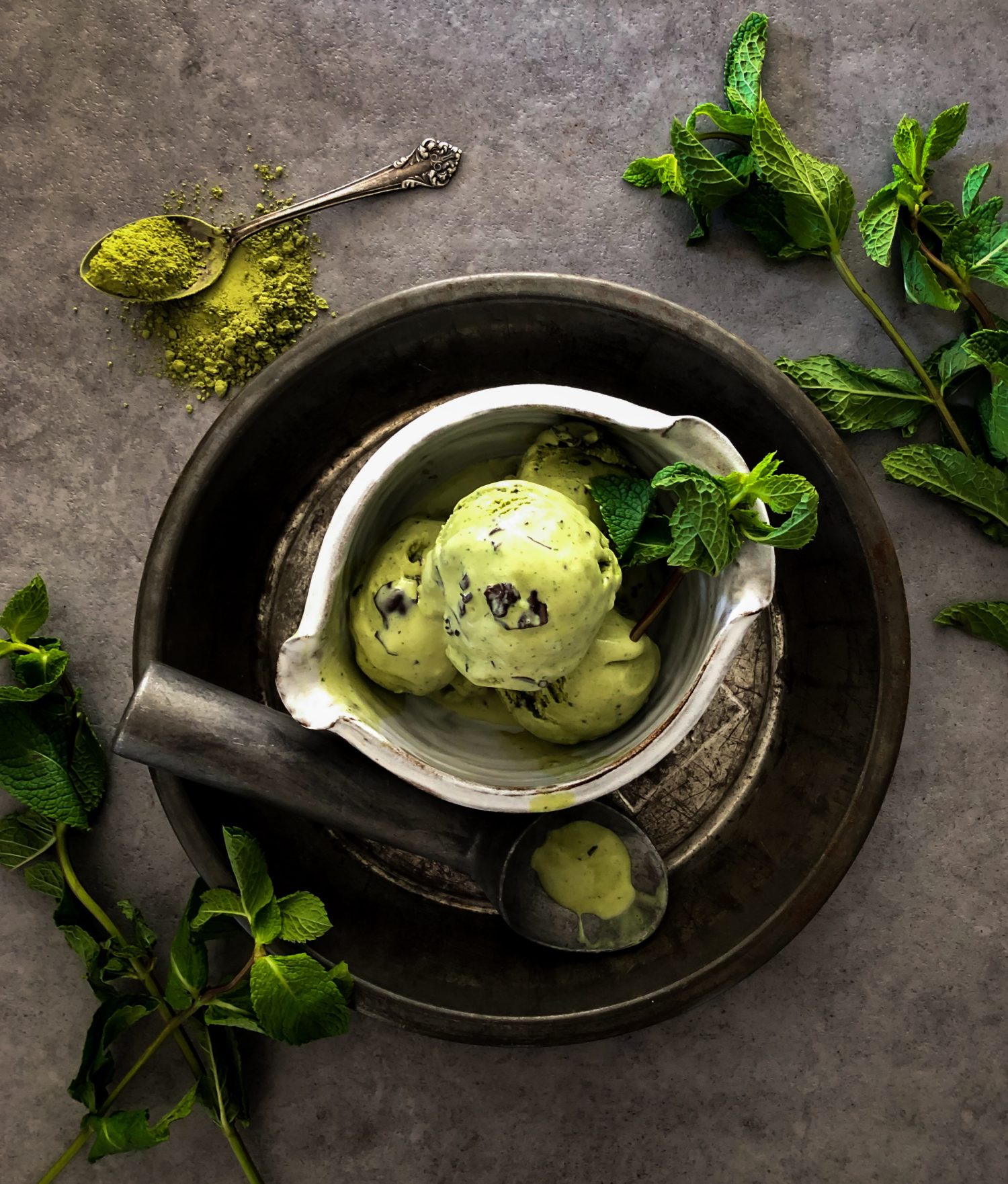 Up until now, all the mint chocolate chip ice cream recipes I had found, used food colouring to get the green hue in the ice cream. Yuck. So fluorescent and fake. But Alanna uses matcha powder. Brilliant. You see, this was back in 2015, and I was still a newbie when it came to cooking with matcha. But I knew deep down that this was the recipe for me. And yes, while there is a faint matcha flavour for subtle depth, it is not the predominant flavour. The mint really does shine in the end. But the colour is so gentle and natural.