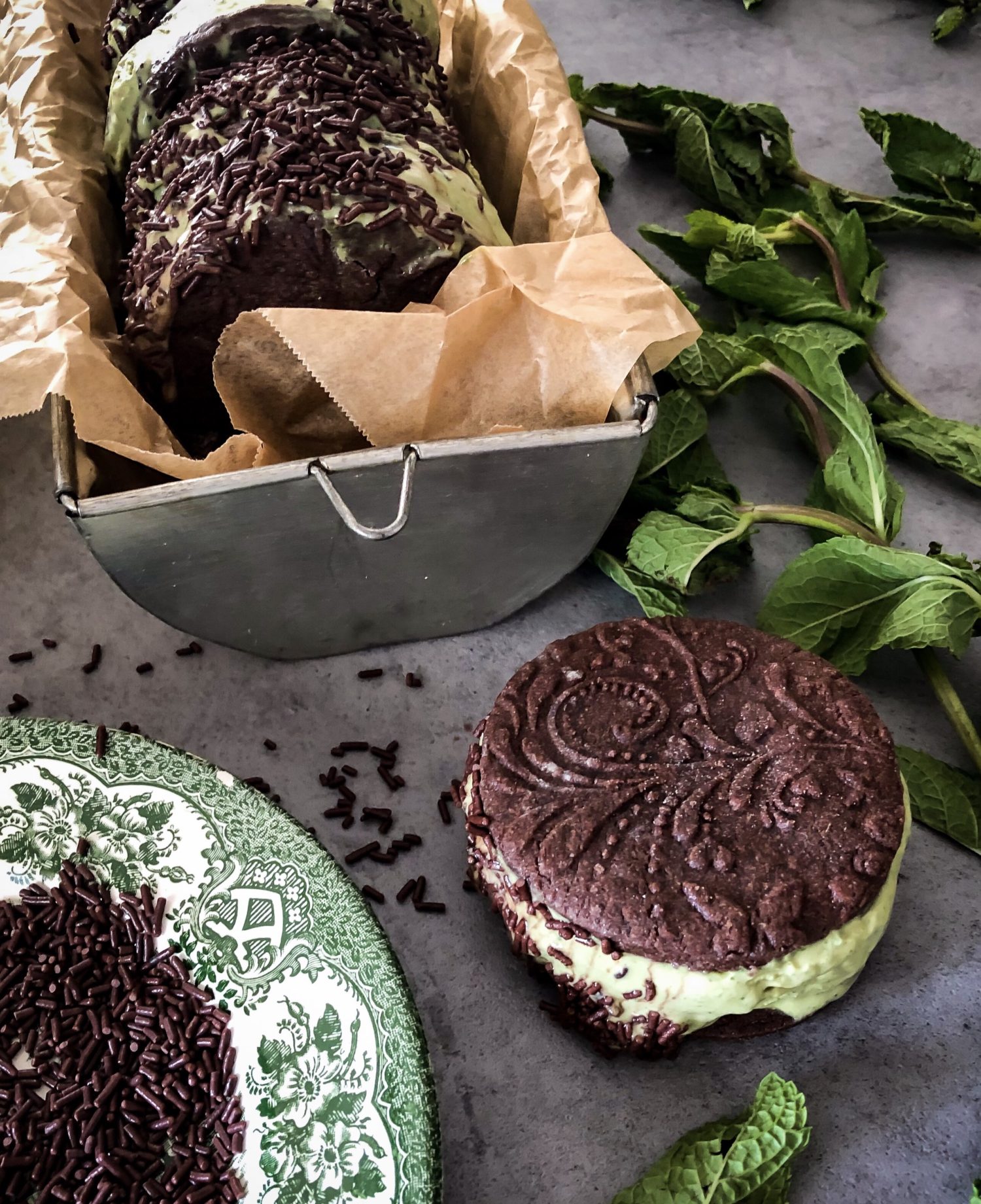 The perfect creamy, minty, chocolate-y ice cream sandwiched between bourbon infused brownie cookies. What more can you ask for on a hot summer’s eve?!