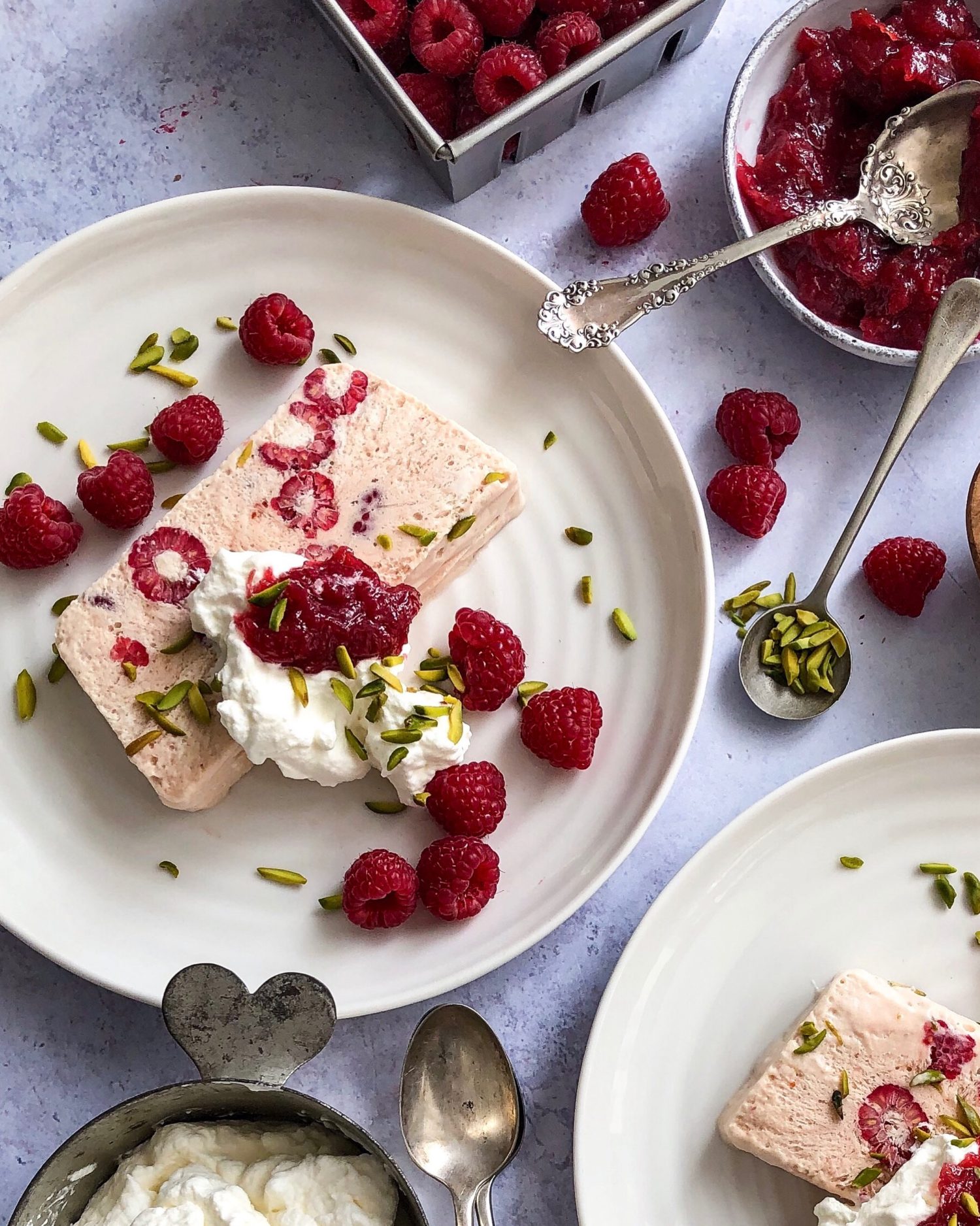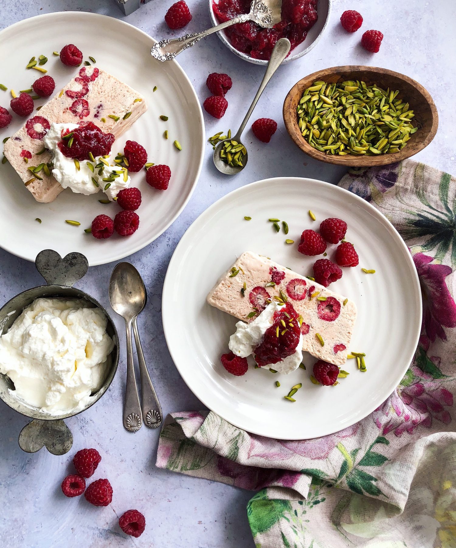 Rose Harissa Rhubarb and Raspberry Semifreddo