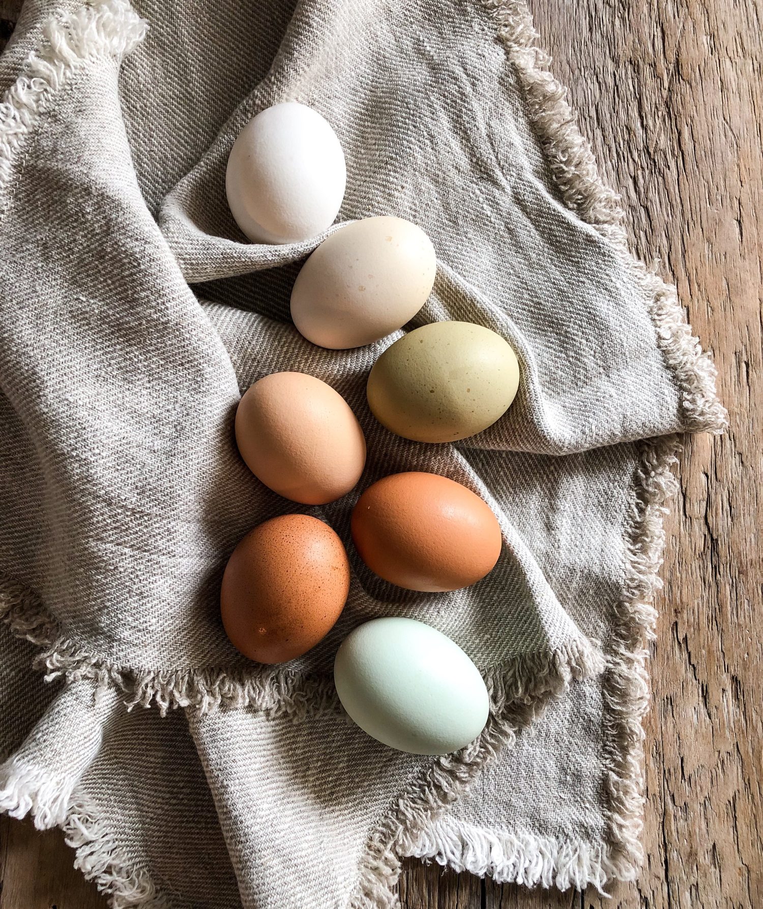 Rose Harissa Rhubarb Raspberry Semifreddo, heritage eggs