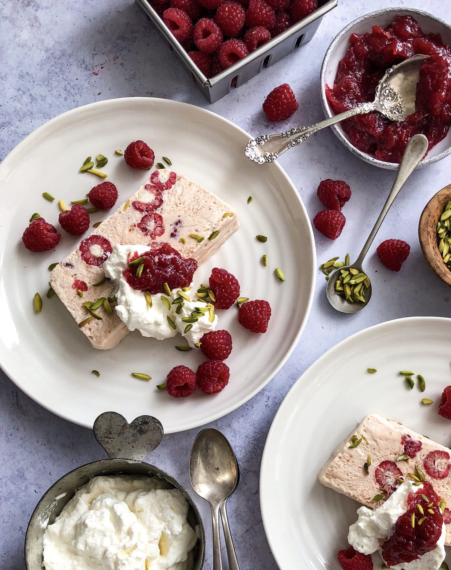 Rose Harissa Rhubarb Raspberry Semifreddo