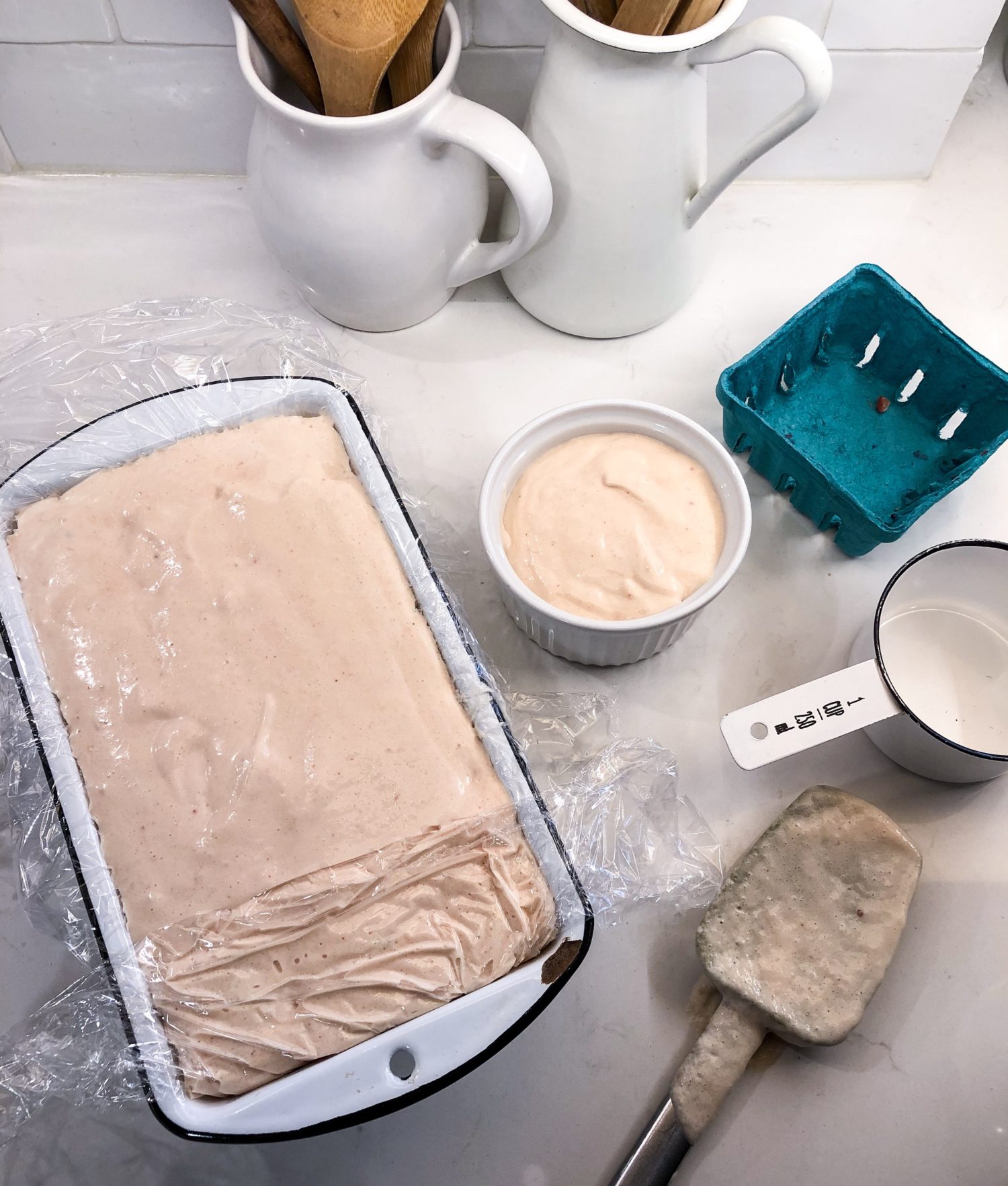 Rose Harissa Rhubarb Raspberry Semifreddo, prep