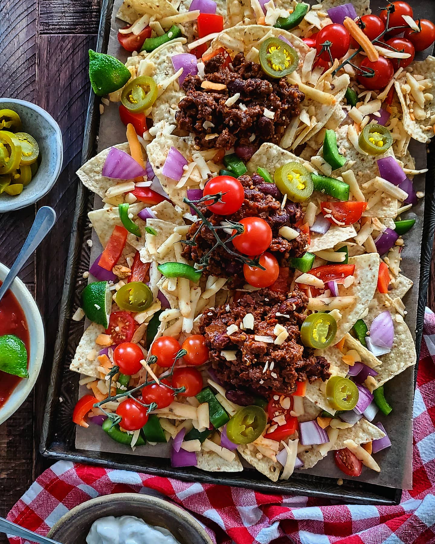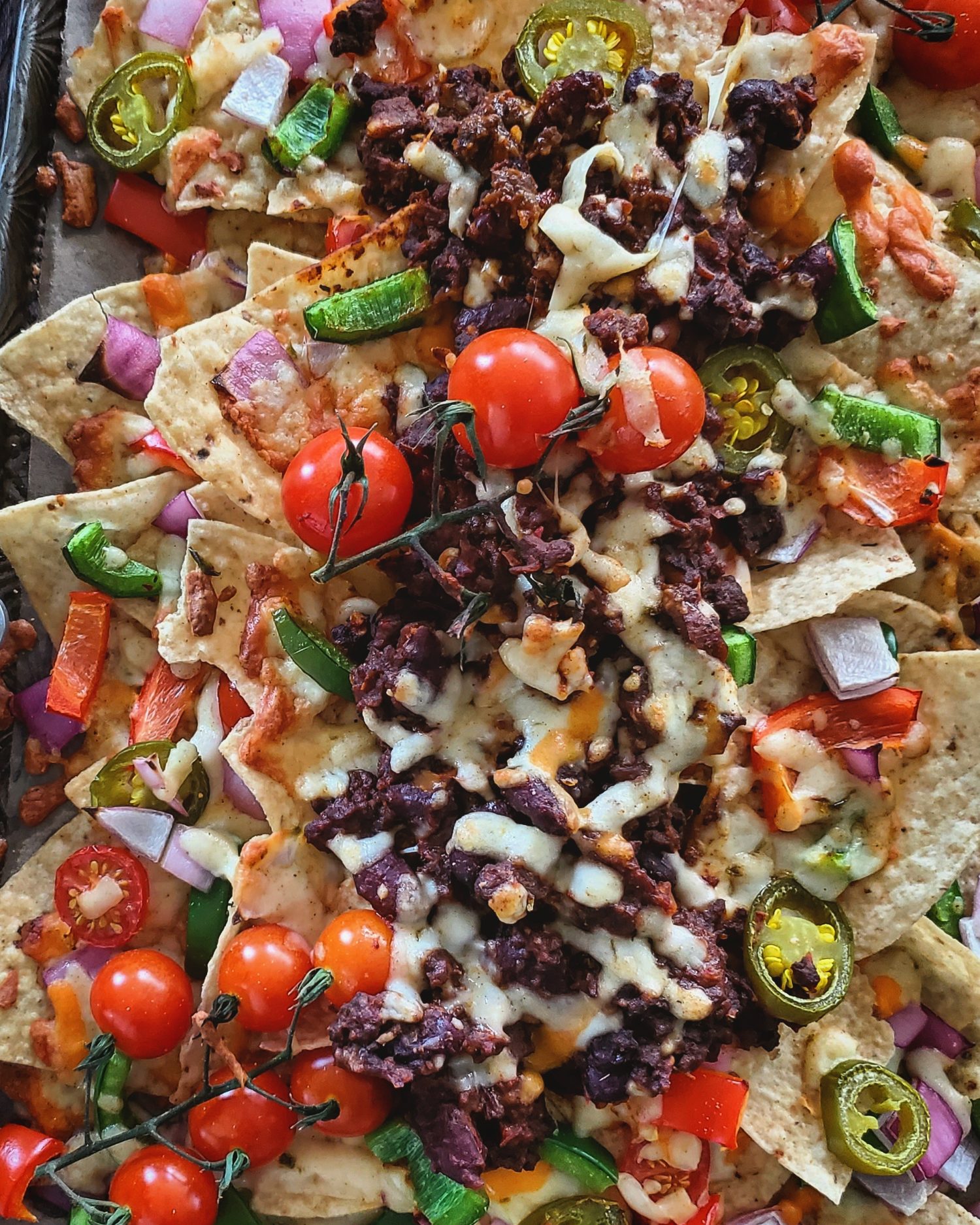 Sheet Pan Nachos with Chilli Topping