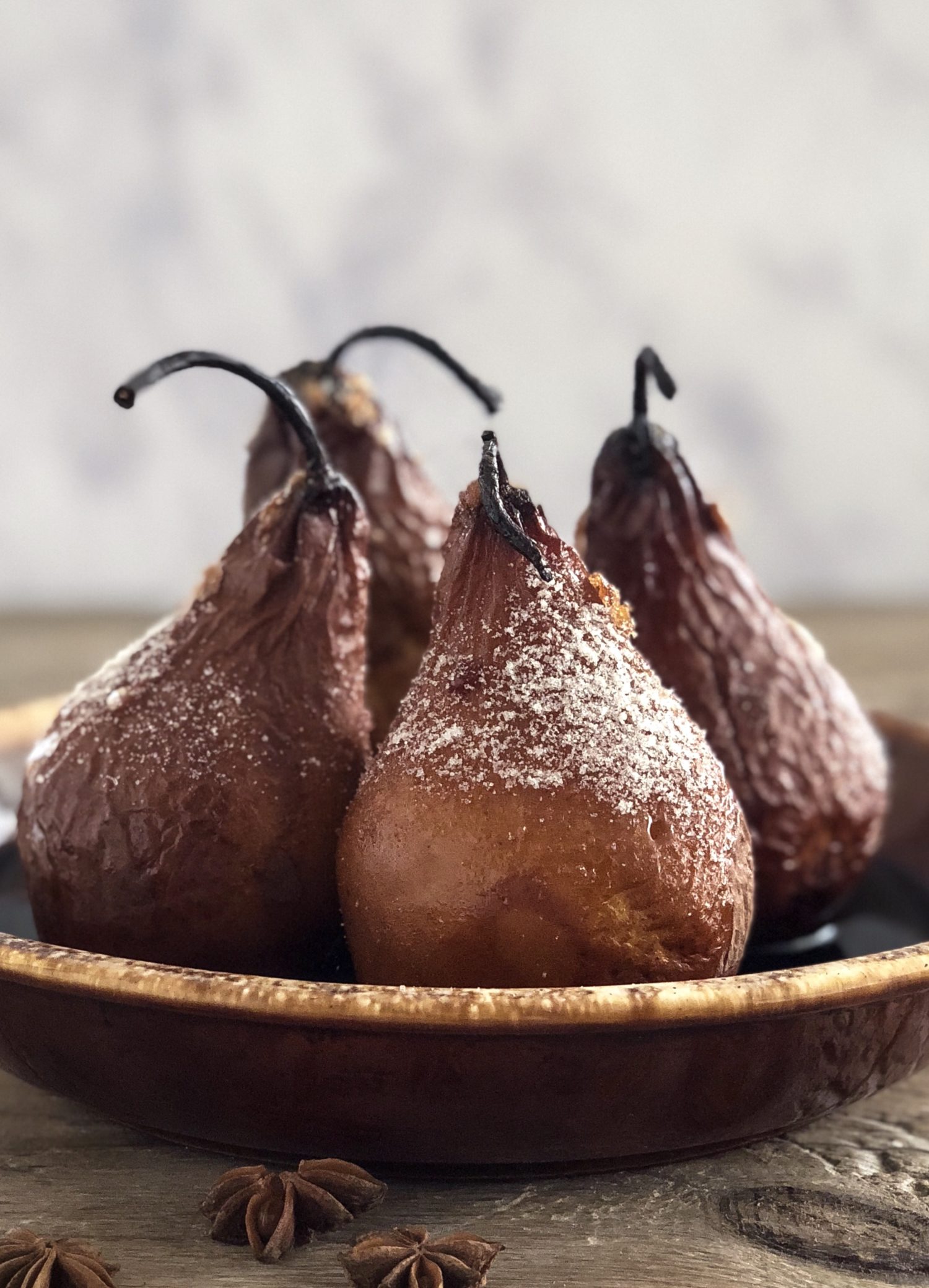 Filed Under: Desserts, Vegetarian, Winter Tagged With: anniversary, black cardamom, blog award, bosc pears, cinnamon, cloves, red wine, star anise, taste canada