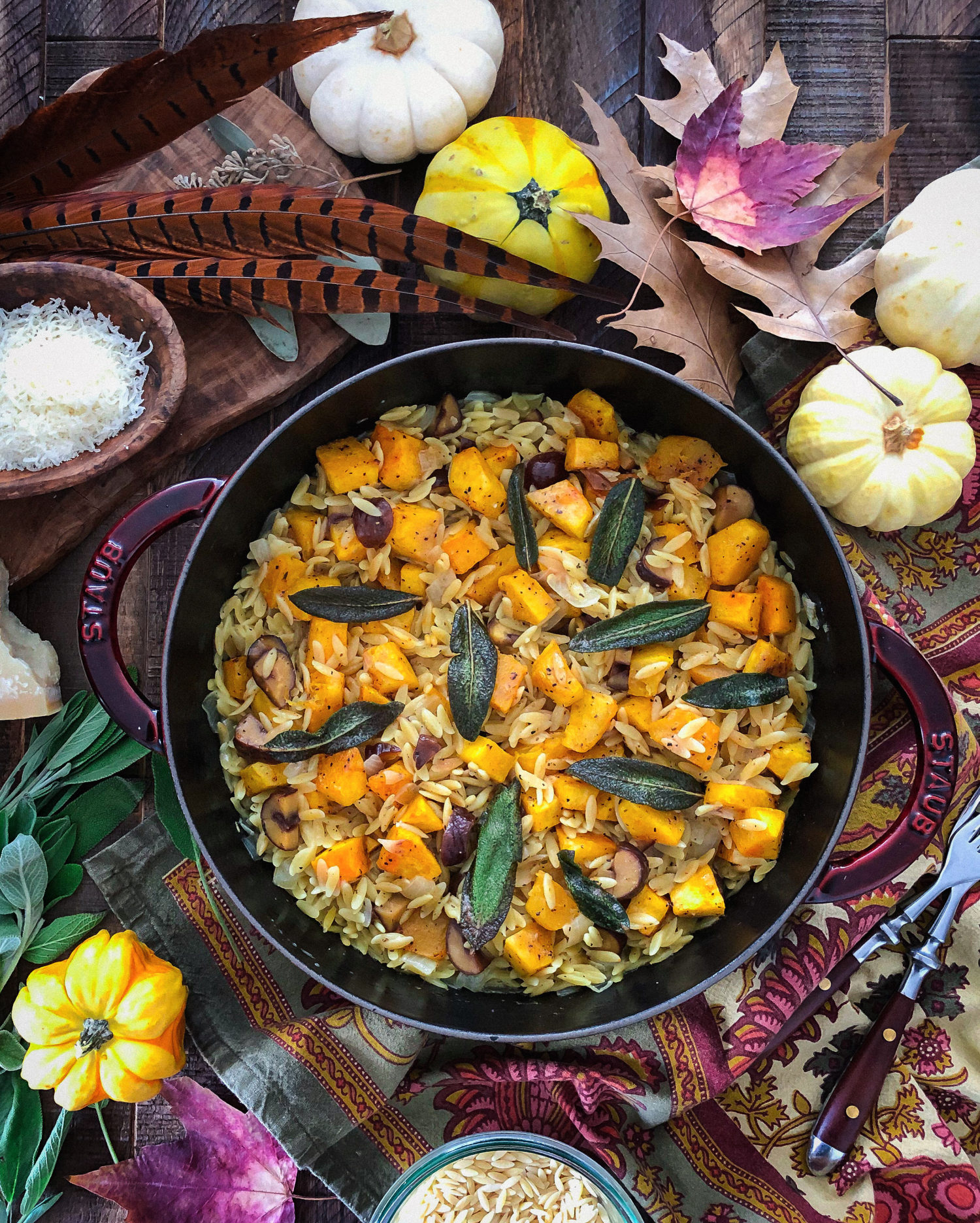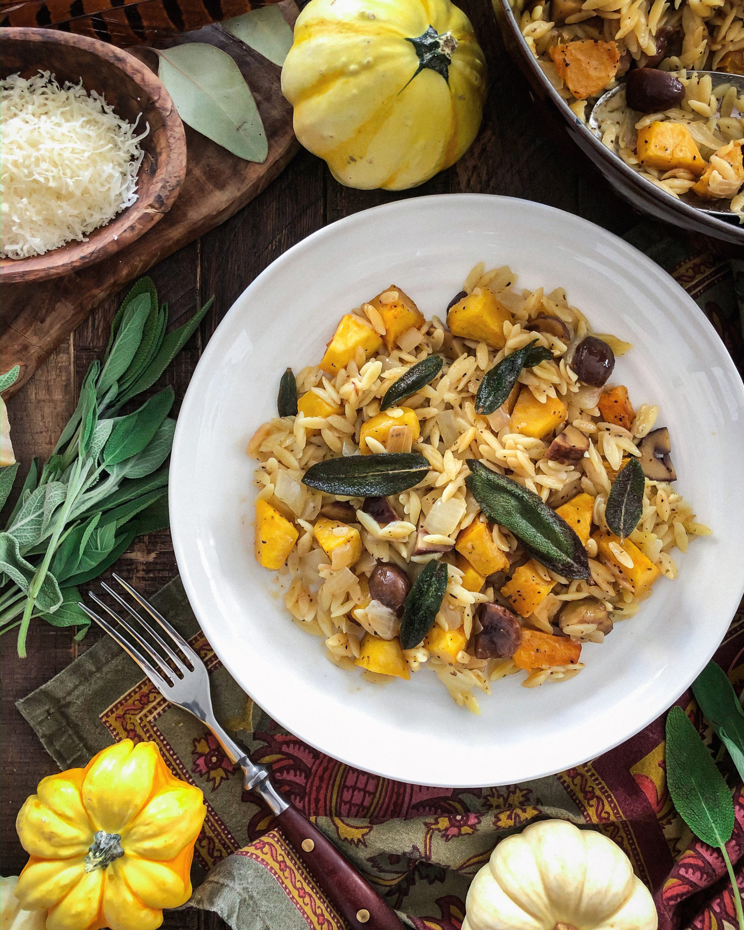 Squash and Chestnut Orzotto with Brown Butter Sage
