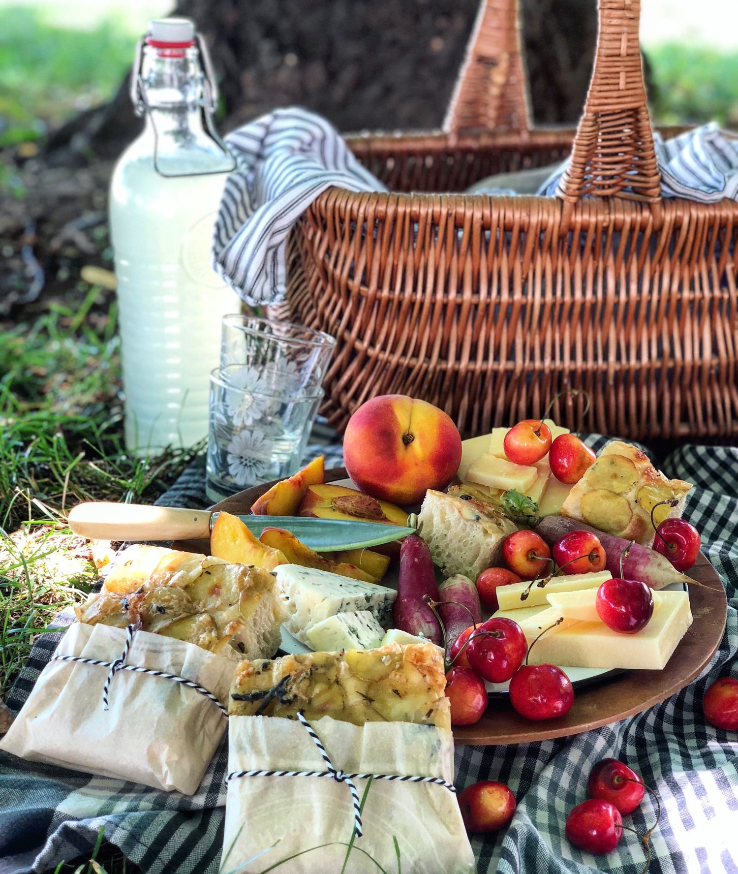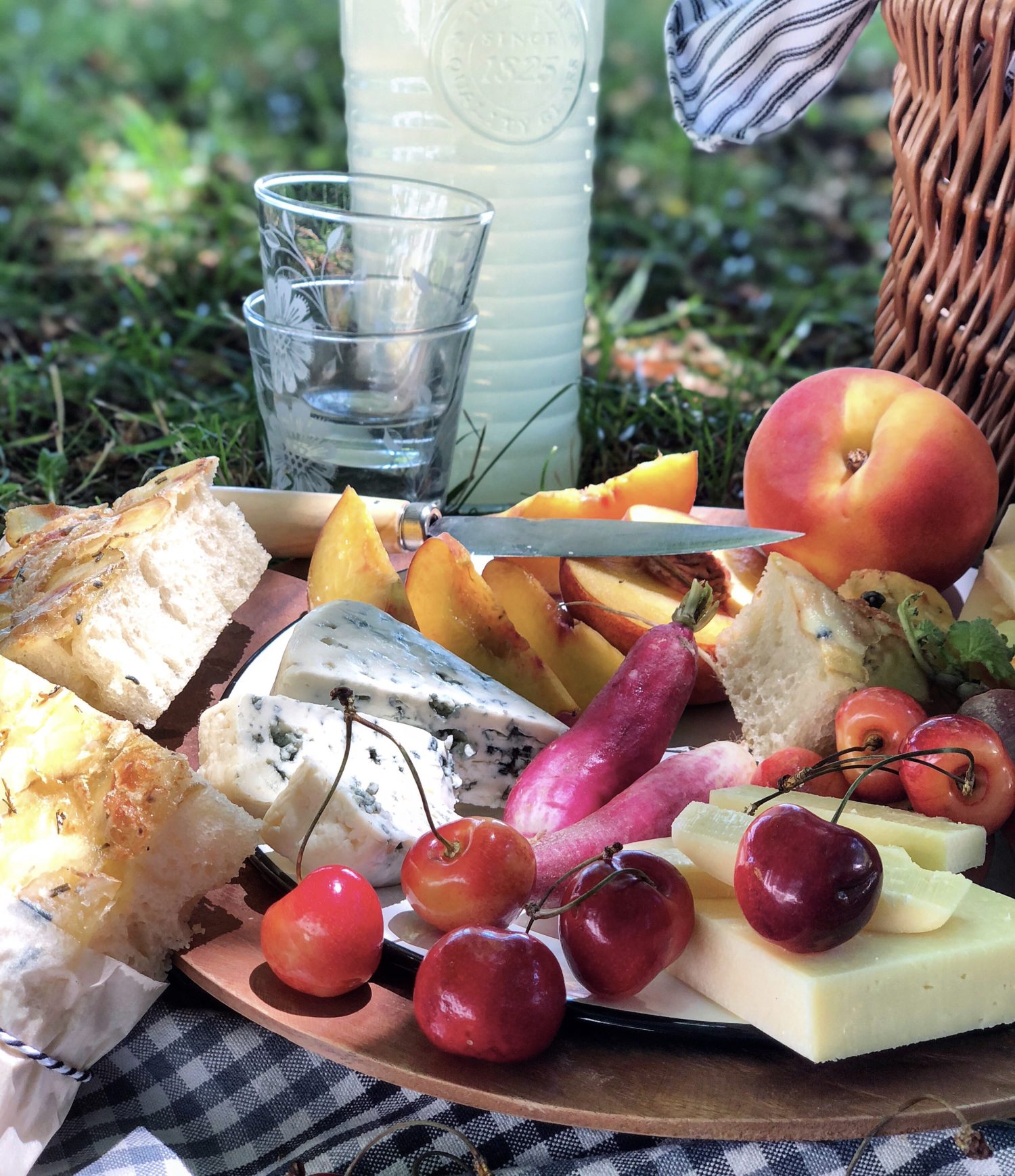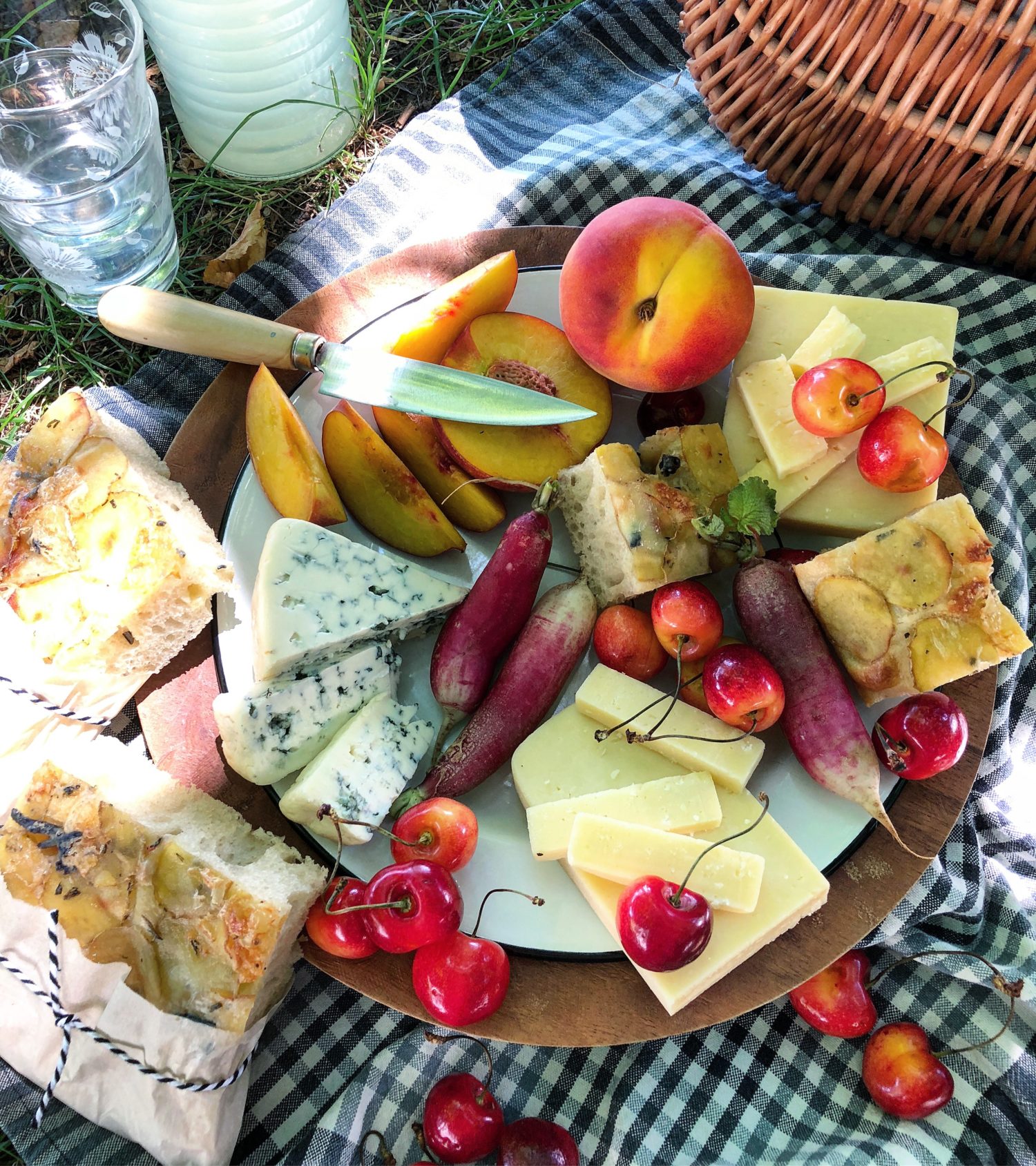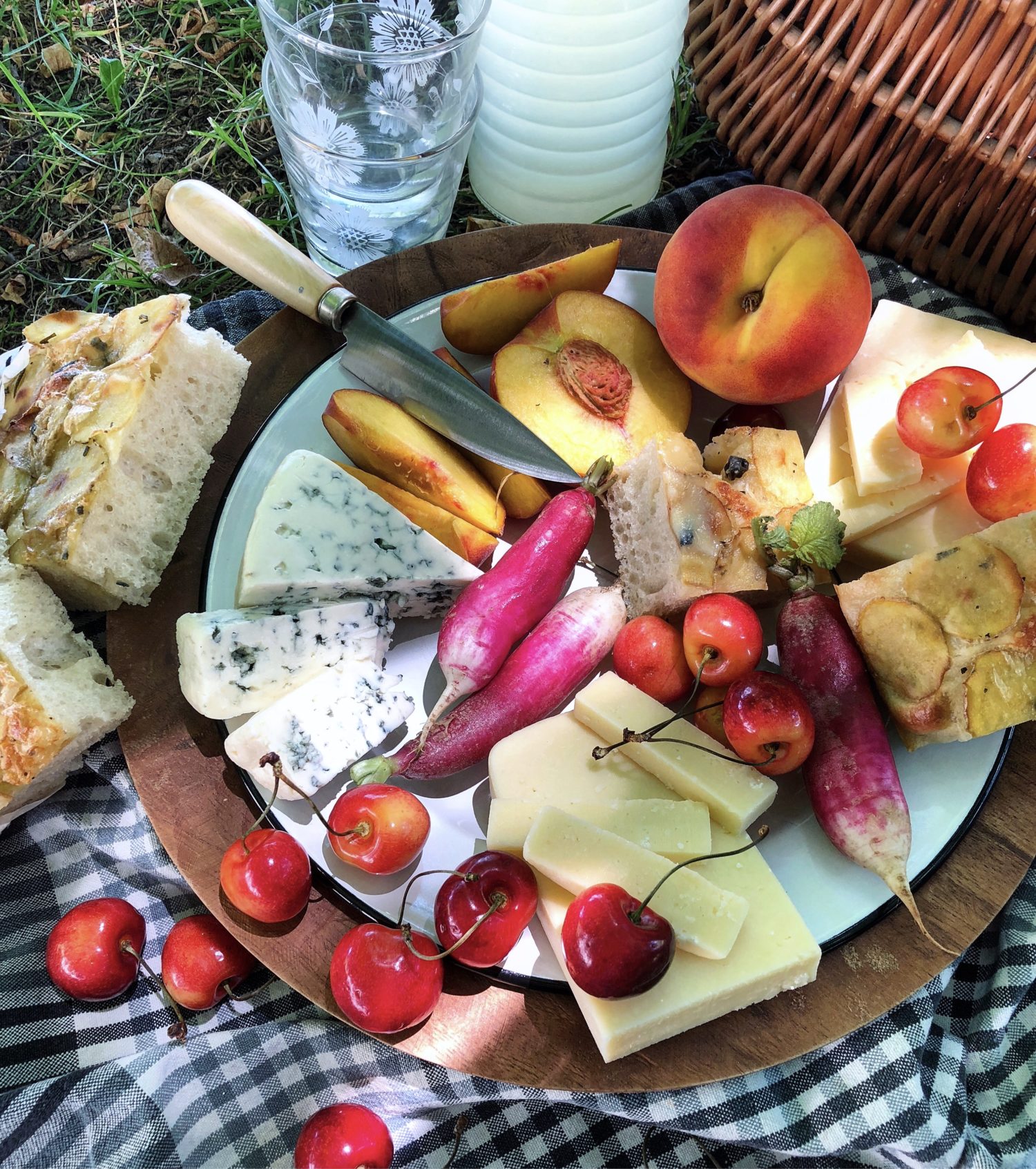 Who says we can’t bring the cheeseboards outside as well? It doesn’t have to be the fancy, packed to the brim, like the ones that I love to put together when entertaining at home. Why not take a casual approach to a summer picnic and a cheeseboard at the same time? It’s summer, so you know fruit is in abundance. Grab your favourite stone fruit or berries and put them into a container. Choose some favourite cheeses that can handle the heat of the sun and wrap them up. Some crudités (fancy word for cut up veggies!) and some crackers or bread, and you’re all set.