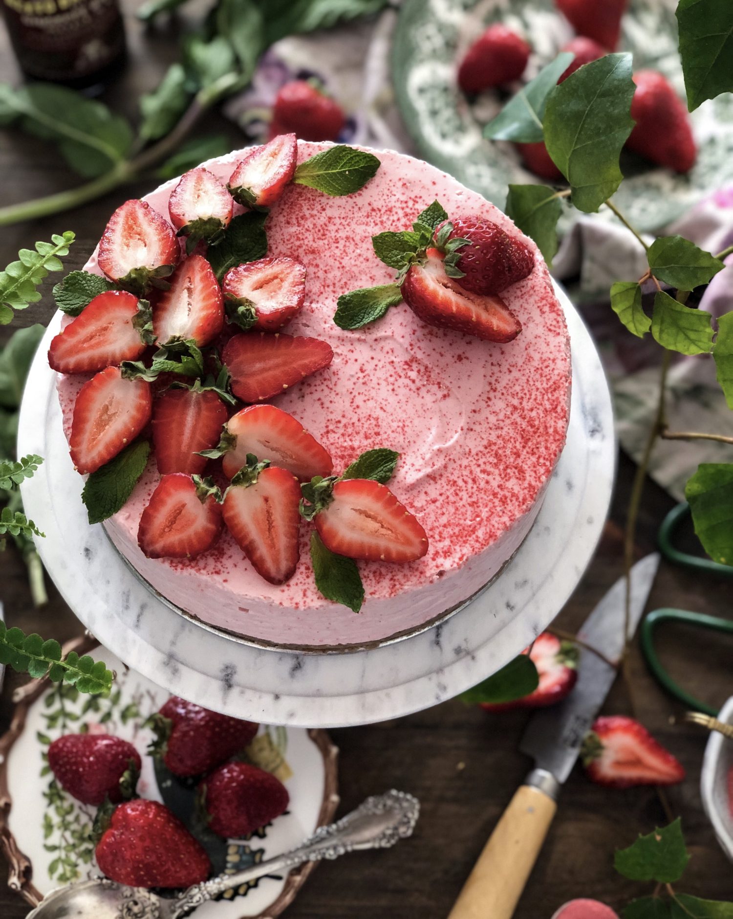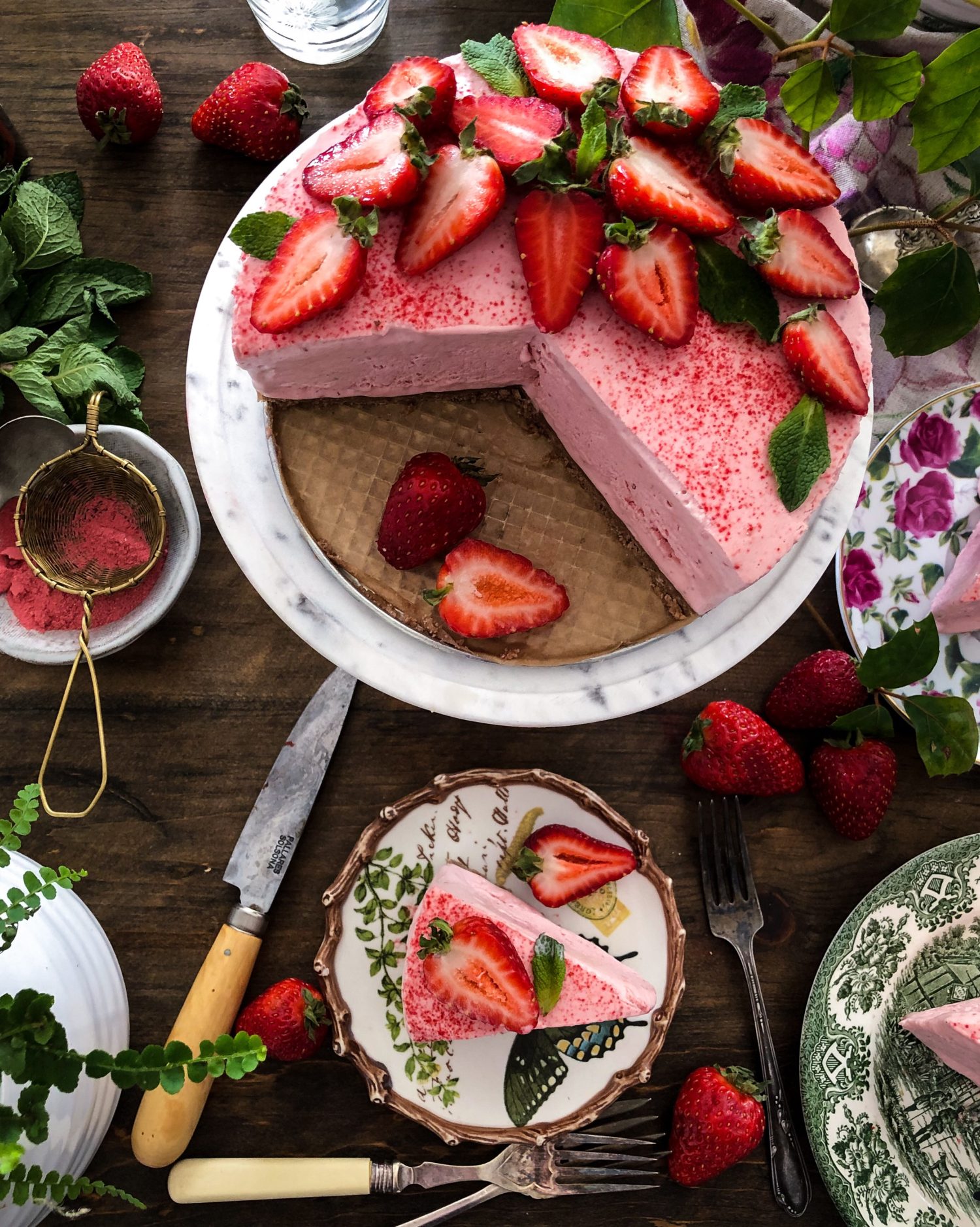 The Best No Bake Balsamic Strawberry and Pink Peppercorn Cheesecake