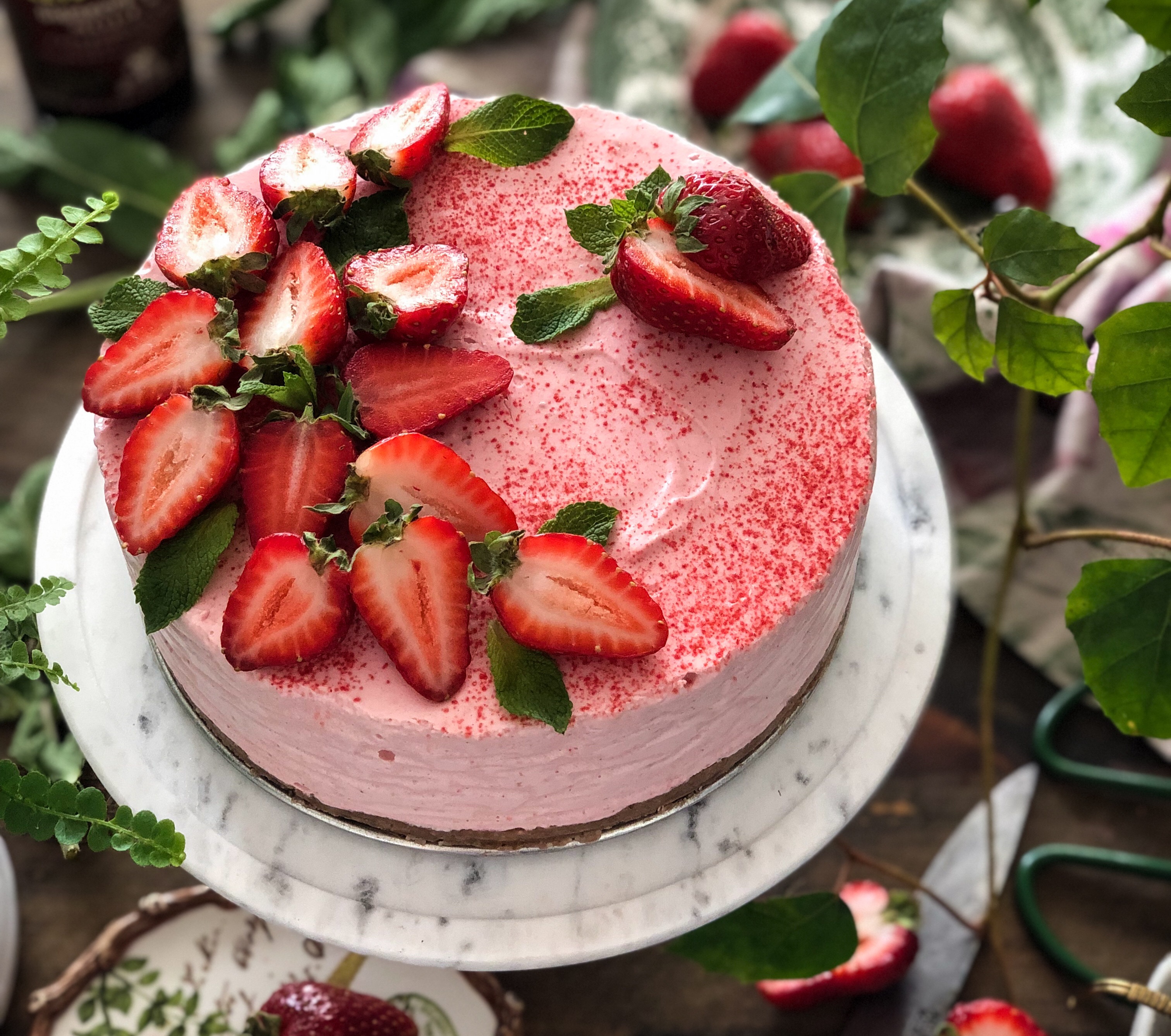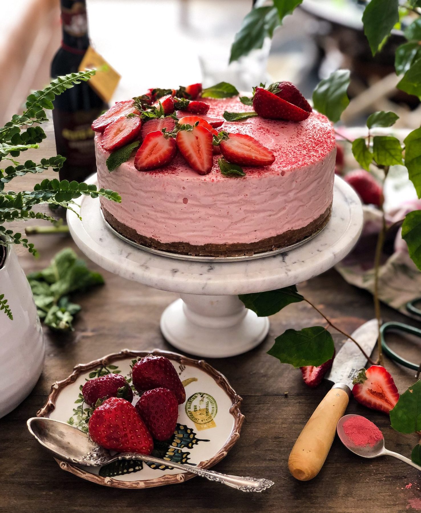 No Bake Balsamic Strawberry and pink peppercorn Cheesecake