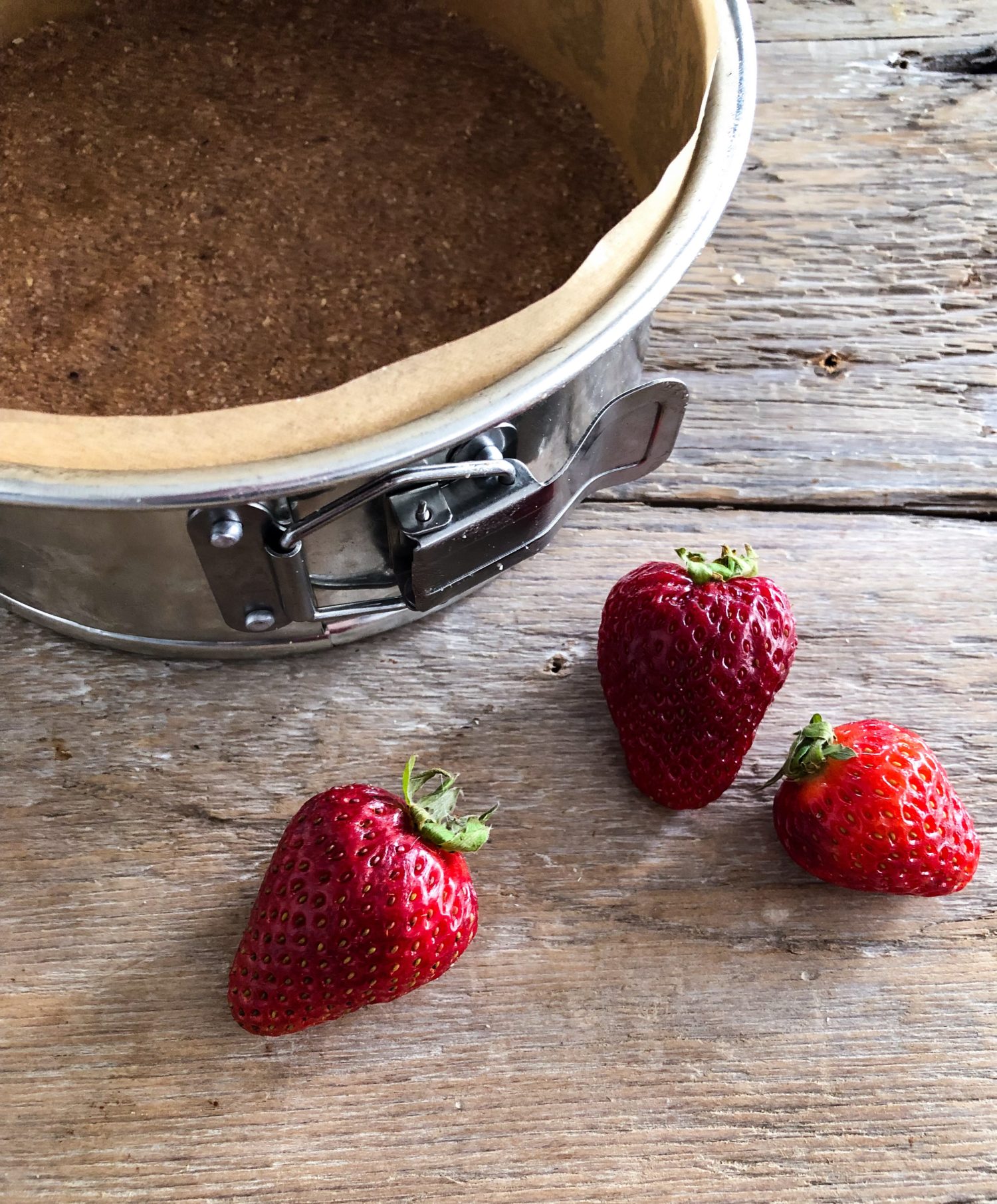 No Bake Strawberry Cheesecake gluten free ground almond or almond flour crust, no bake crust