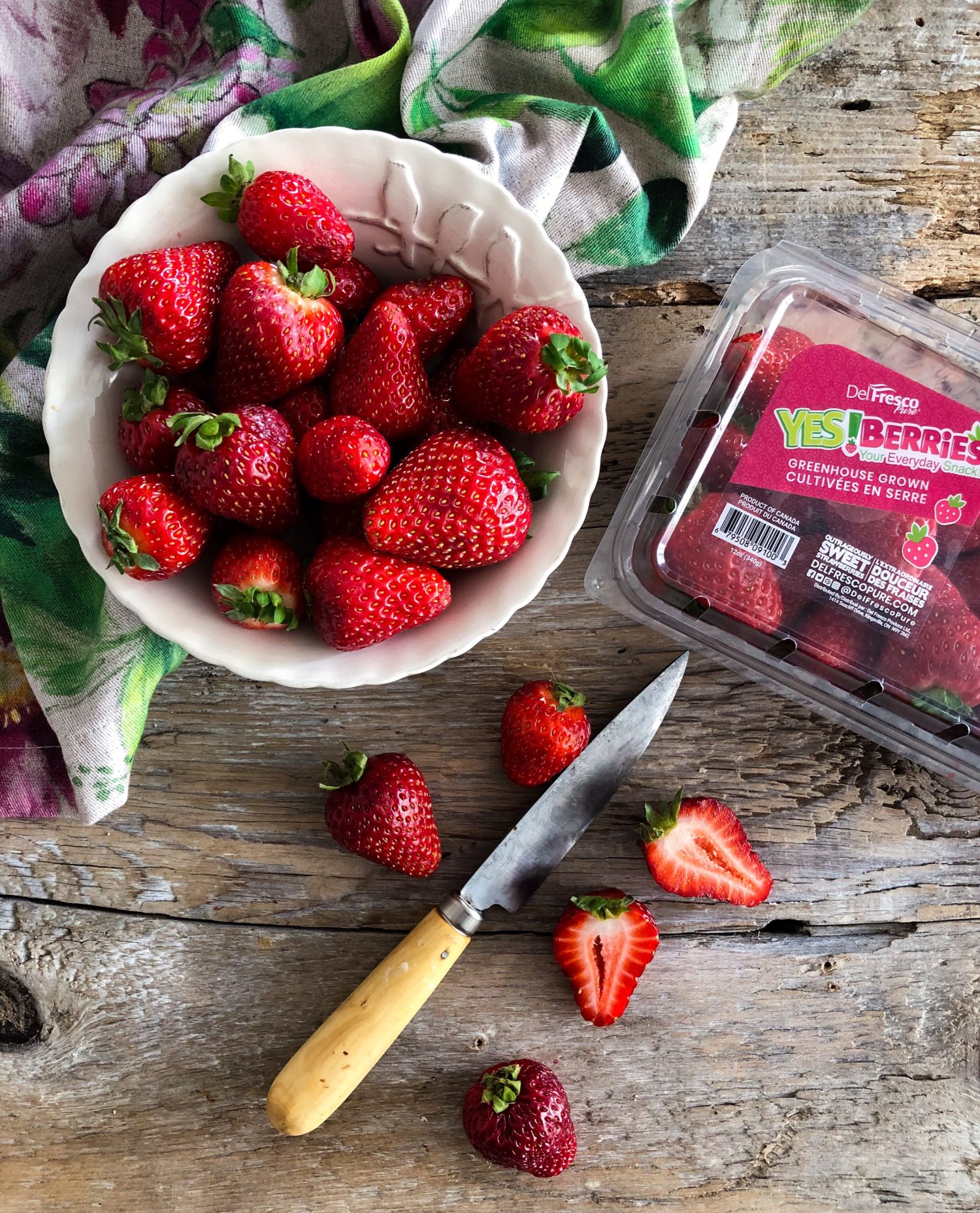 This post has been wonderfully sponsored by DelFresco, and their amazing Ontario grown sweet strawberries.  It’s lovely to know that I can use local berries, as opposed to the ones shipped over from South America or the States.  Yay local!!  You can find them in most any grocery store.  And they really are gorgeous juicy, sweet berries, so it’s a win win!