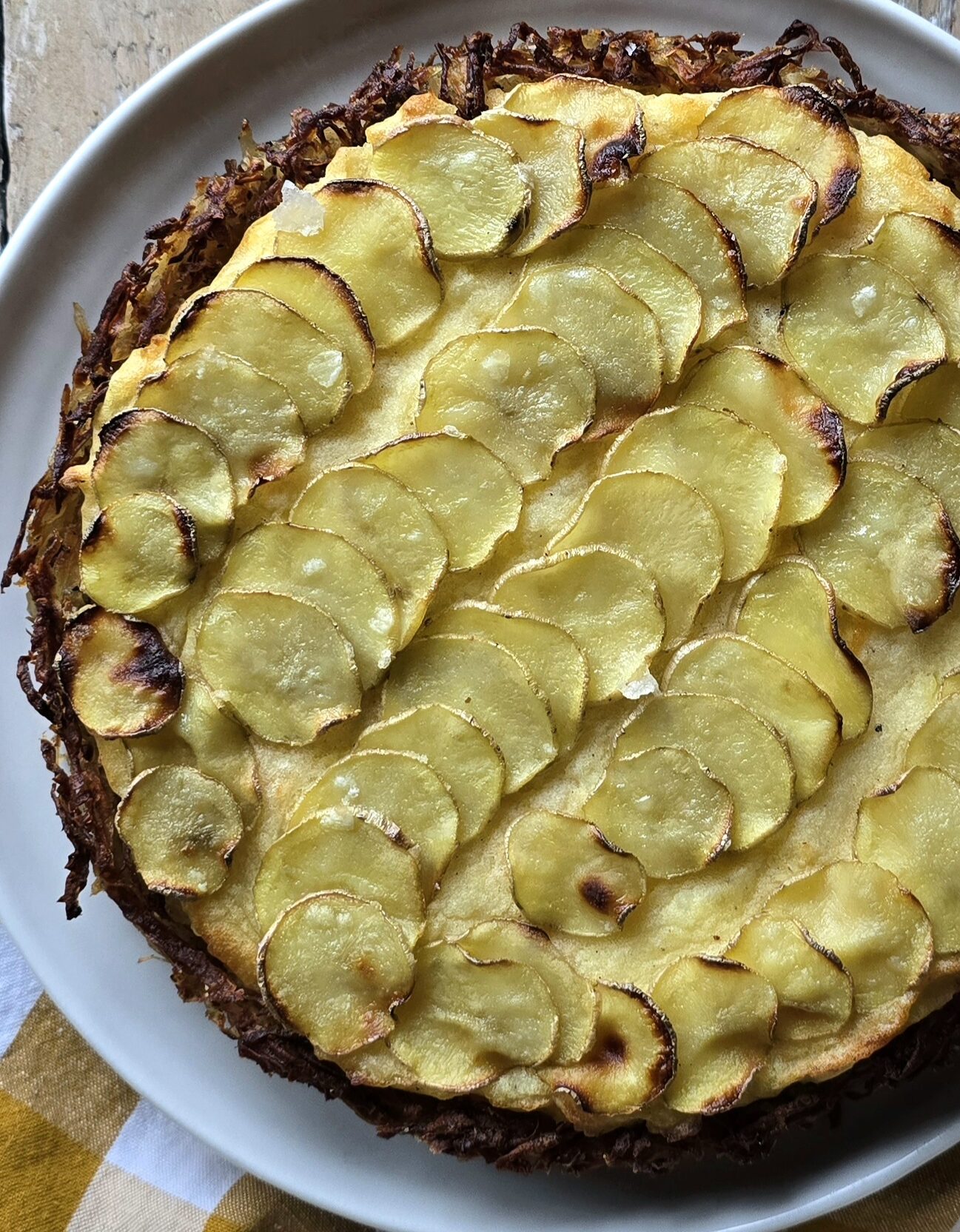 Whether you top a slice with gravy, or with a golden yolked fried egg, this potato pie is such a fun recipe to bring out when entertaining.
