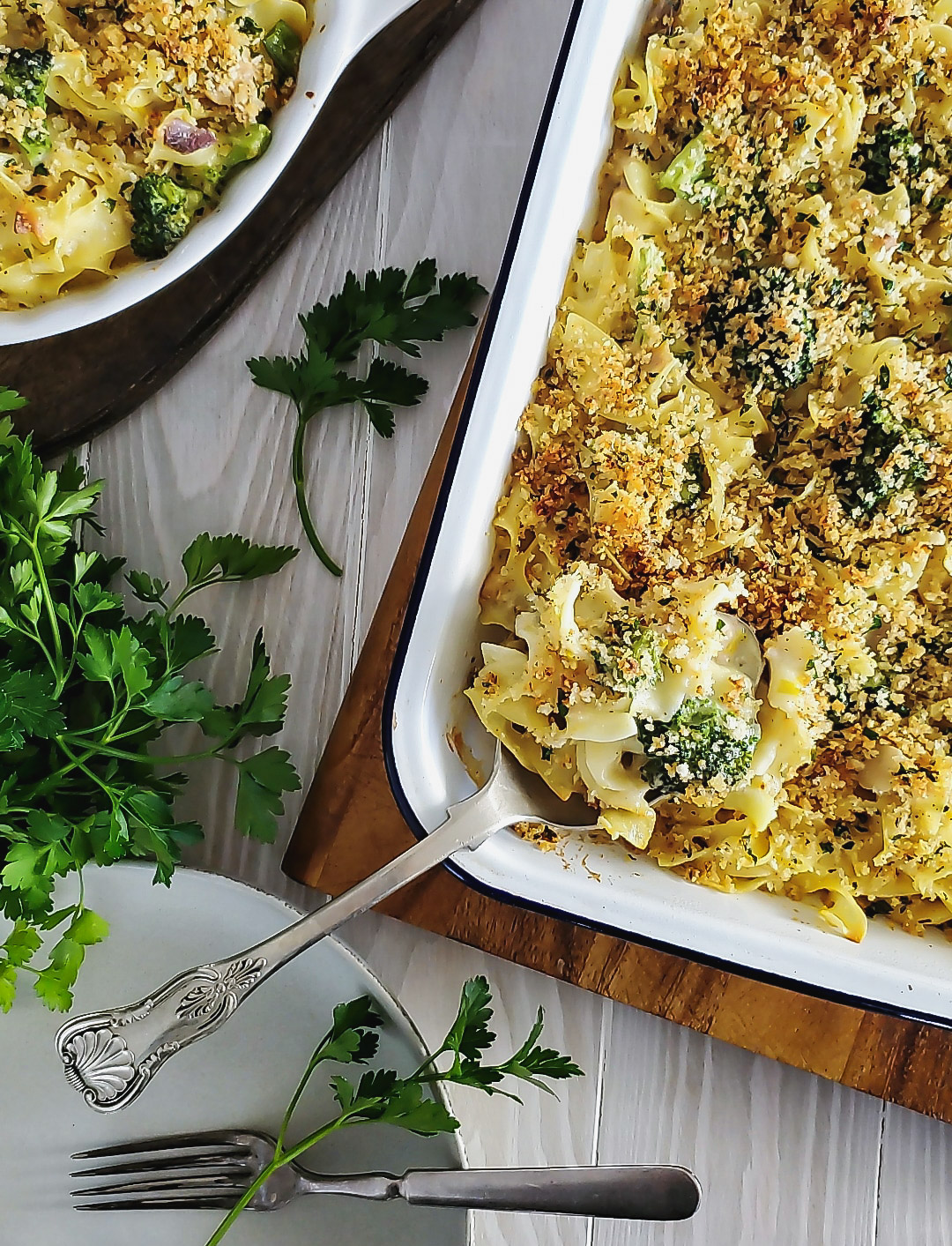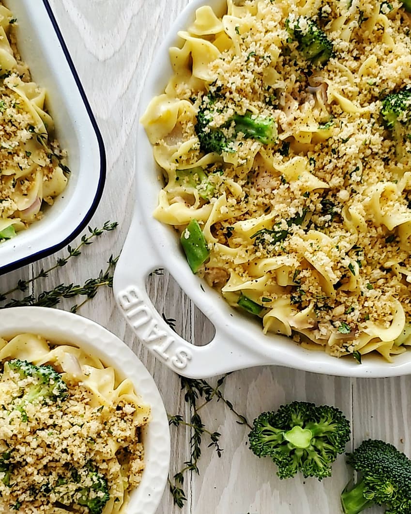 These days it’s all about budget friendly comfort foods. Meals that use pantry staples and easily accessible vegetables etc.  This Tuna Noodle Casserole recipe definitely ticks all the boxes. It’s creamy, crunchy thanks to a perfectly spiced breadcrumb and Parma topping, and has plenty of veg to keep it from being only a carb lovers delight.  For other budget friendly options, check click here.